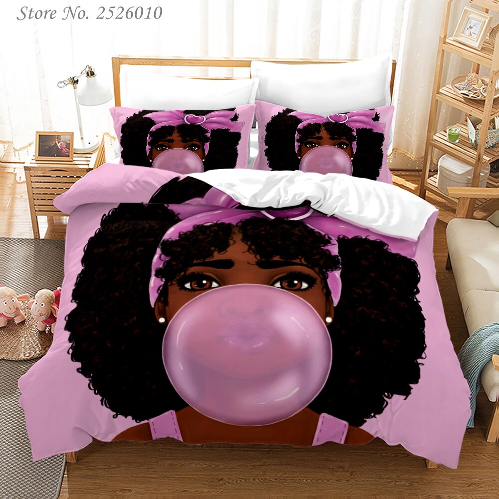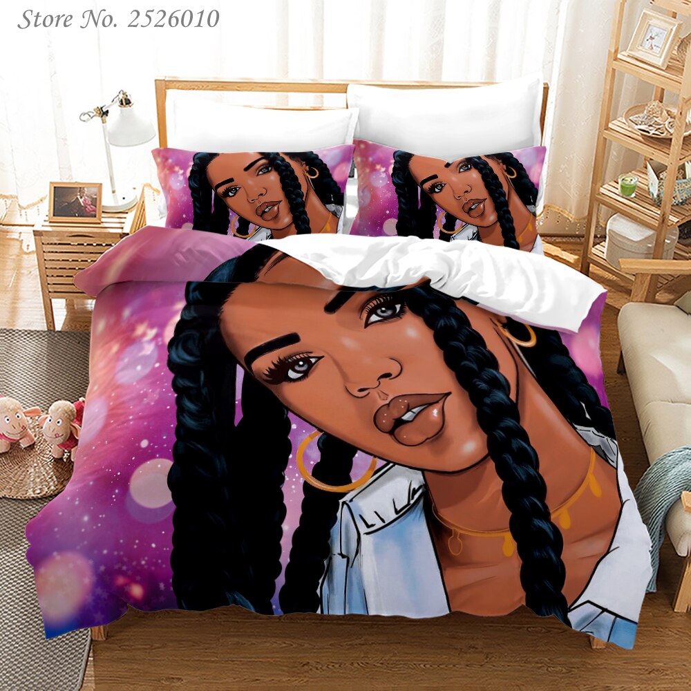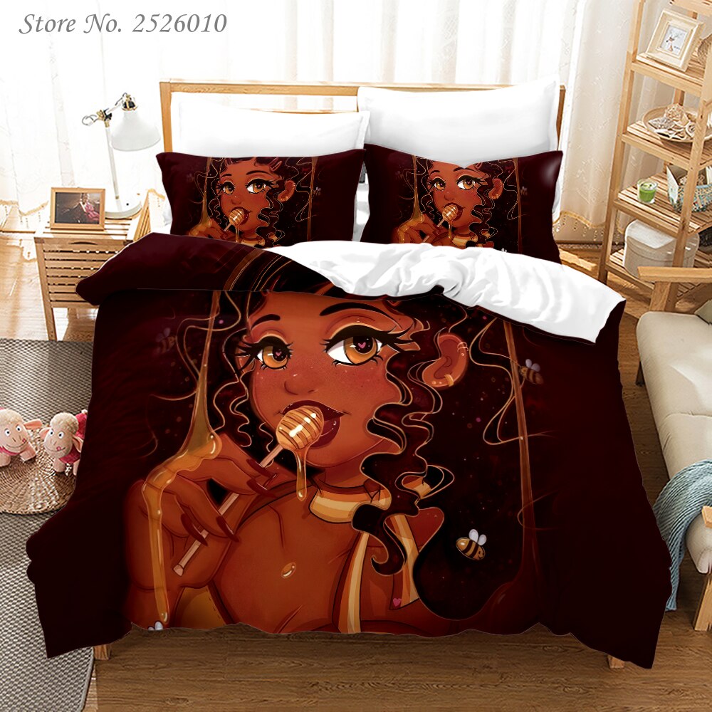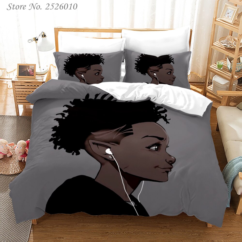 Cartoon Black Girl 3D Printed Bedding Set King Duvet Cover Pillow Case Cover Adult Kids Bedclothes Bed Linens 01