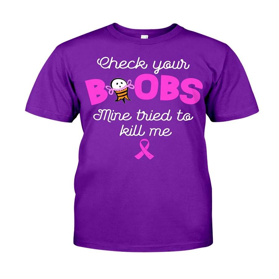 Check Your Boobs – Mine Tried To Kill Me Breast Cancer Awareness Classic T-shirt Classic T-shirt Unisex Shirt For Women/men – T-Shirt