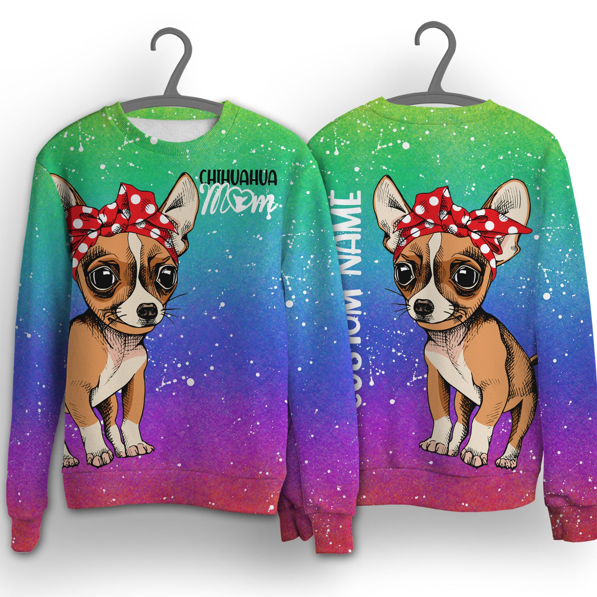 Chihuahua Mom Rainbow Color Custom Name 3D Long Sleeve Shirt For Dog Mother On Mother’s Day