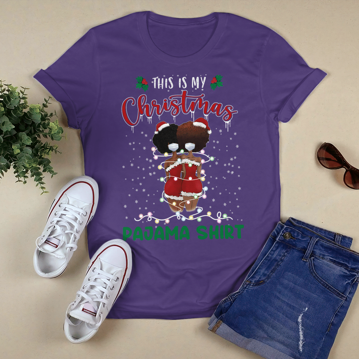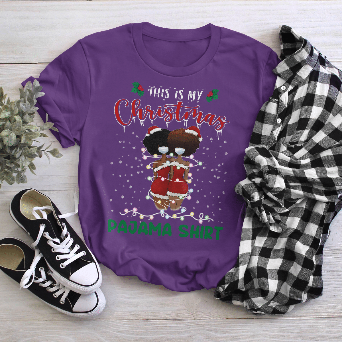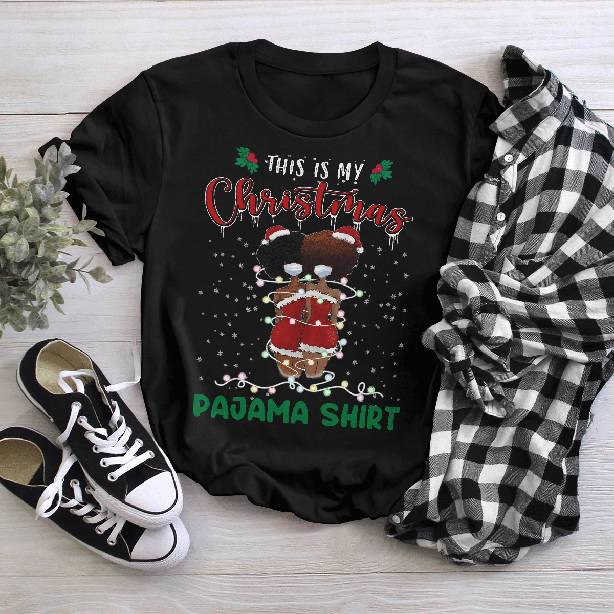 Christmas Tshirt For Black Girl Friends T-Shirt This Is My Christmas Pajama Shirt