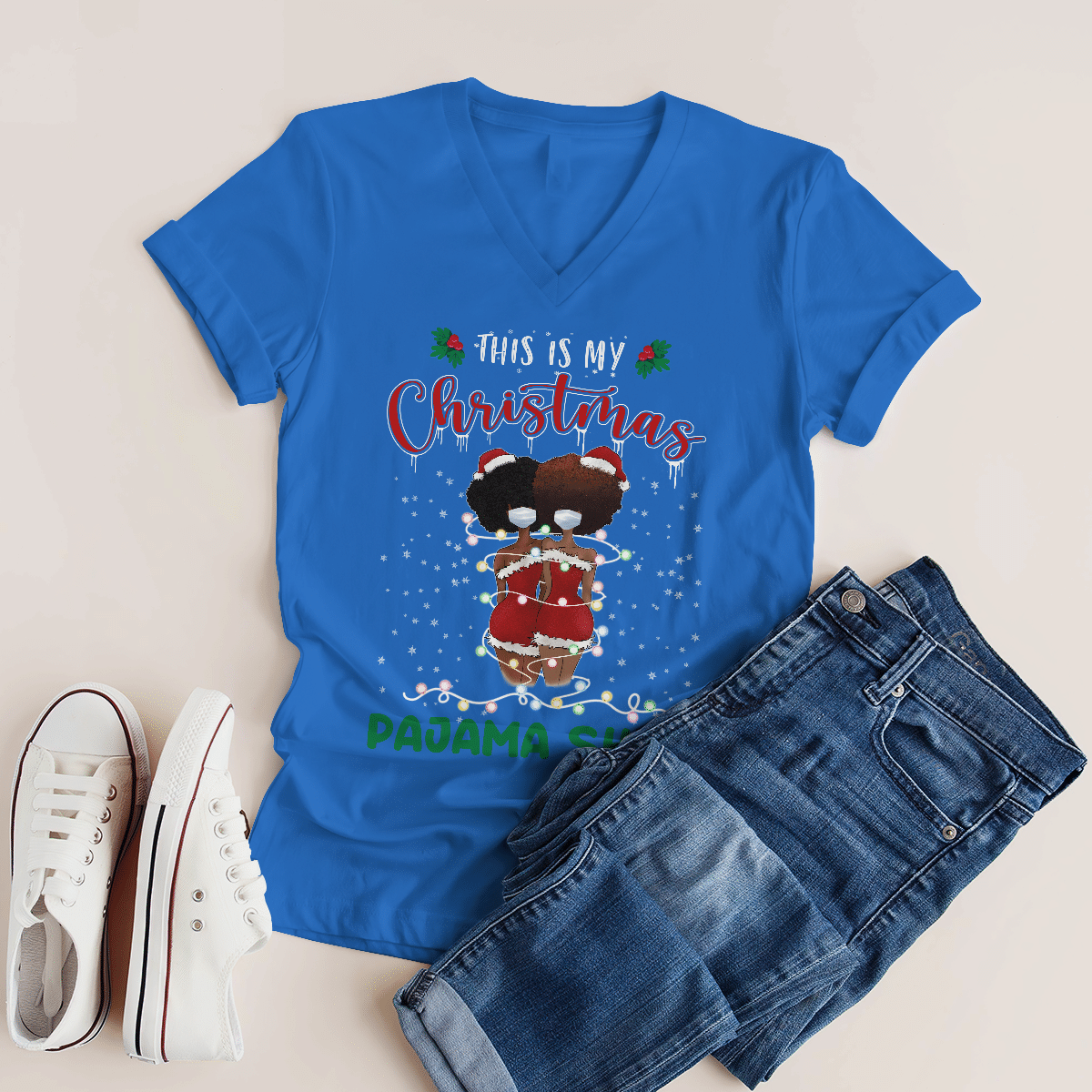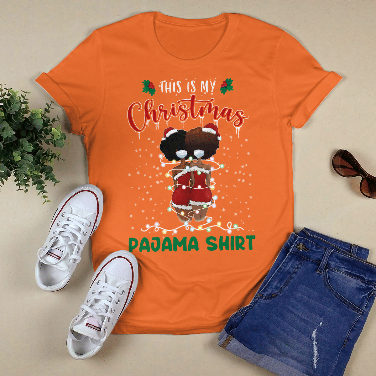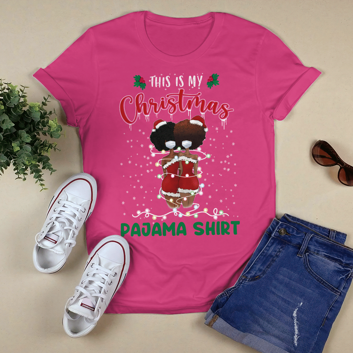 Christmas Tshirt For Black Girl Friends T-Shirt This Is My Christmas Pajama Shirt