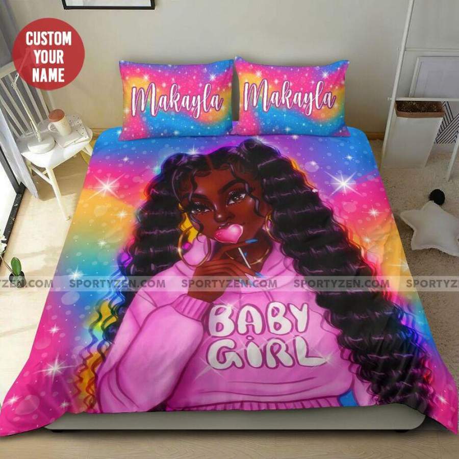 Colorful Long hair Black girl baby girl Custom name on shirt of Duvet Cover Bedding Set #2606l