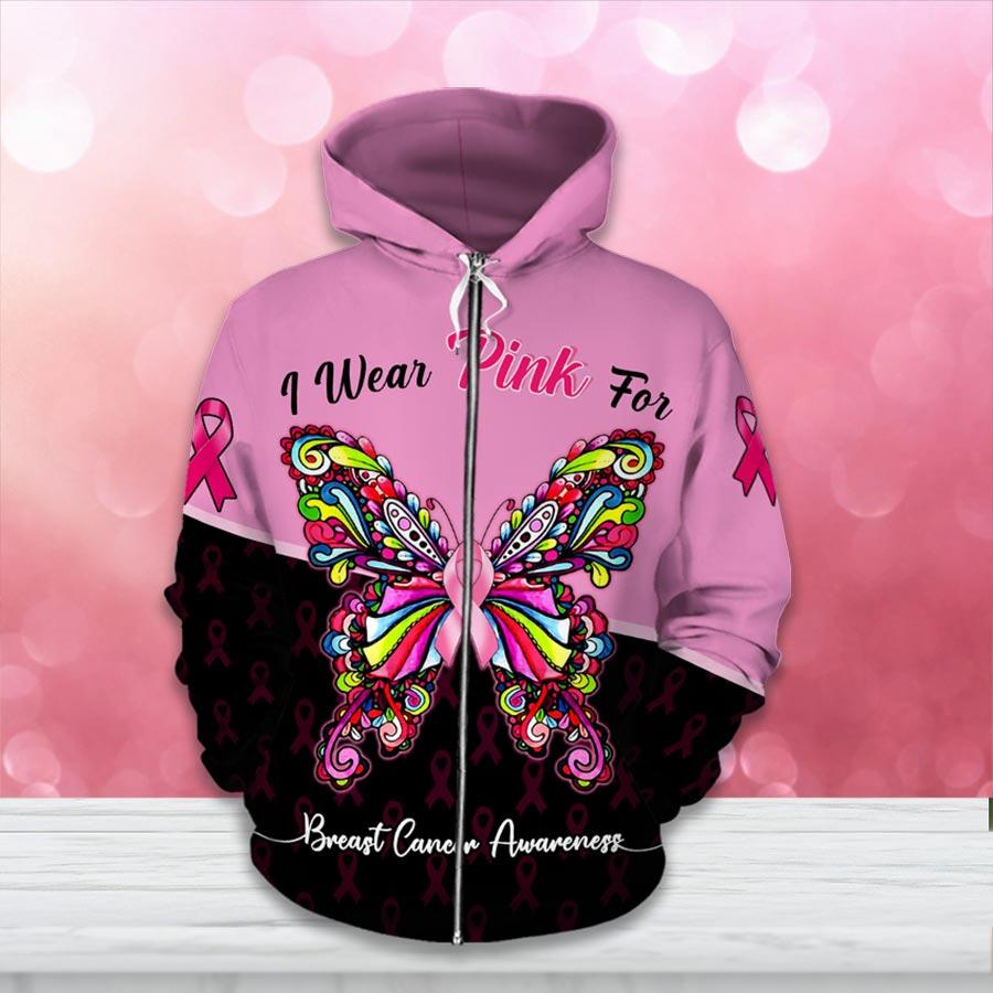 Colorful We Wear Pink Butterfly Breast Cancer Awareness All Over Print Shirts