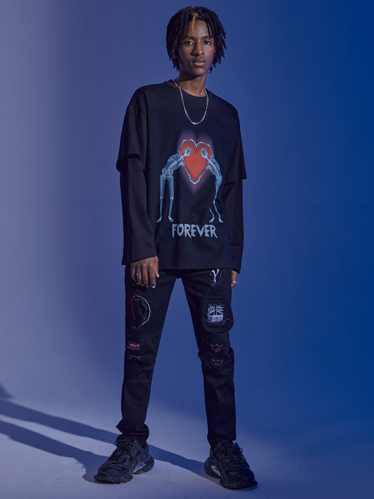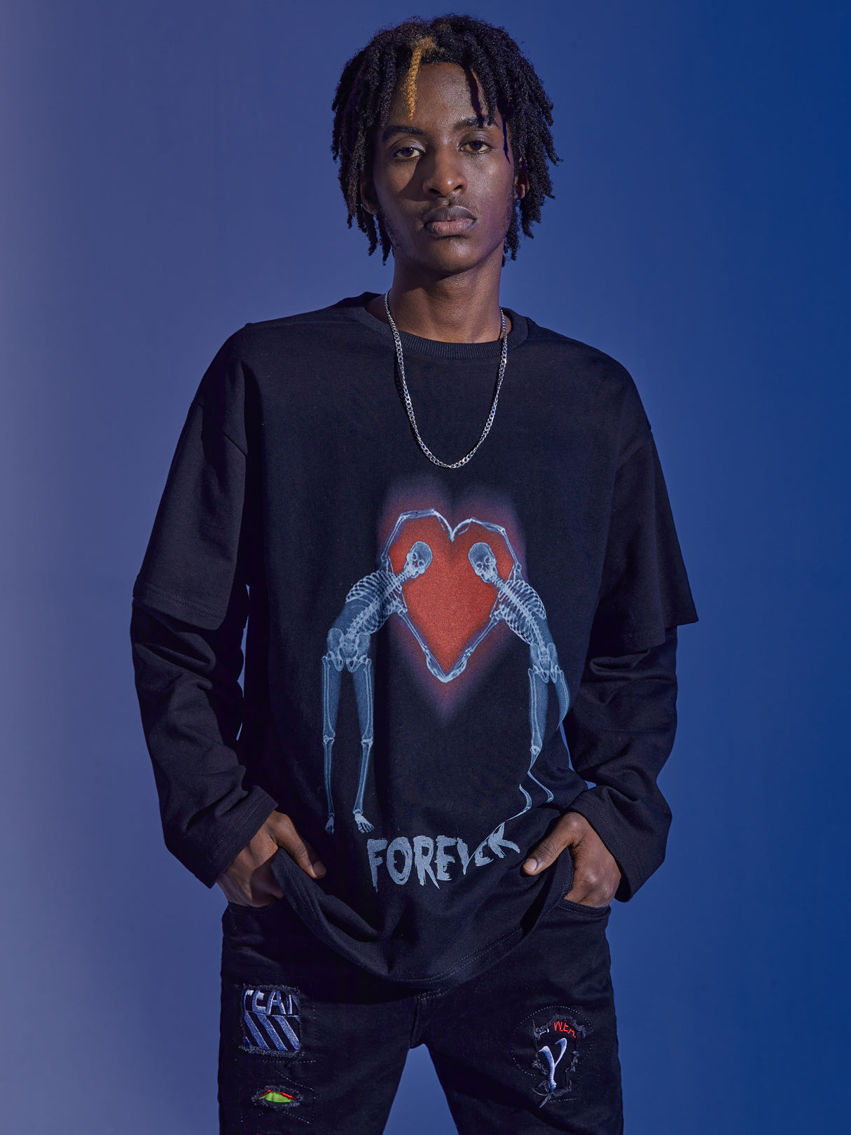 Couple 100% Cotton Skeleton Faux Twinset T-Shirt