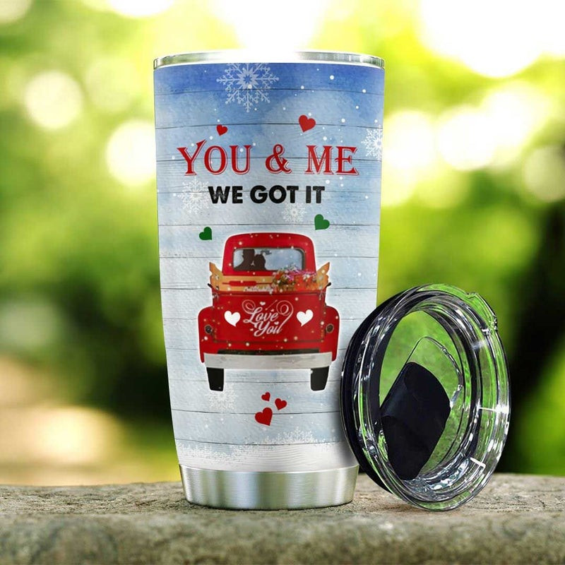 Couple In Red Truck Christmas Stainless Steel Tumbler