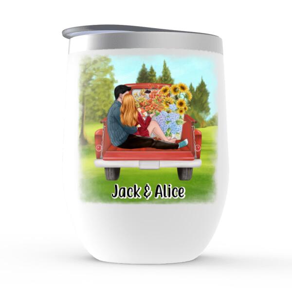 Couple Sitting On Car – Personalized Wine Tumbler For Couples, For Her, For Him, Valentine’S Day