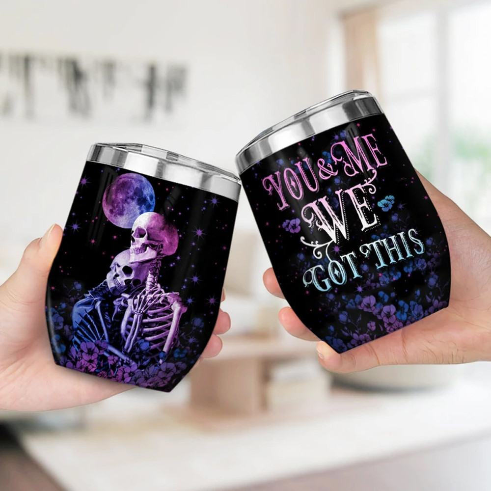 Couple Skull Purple Moon Wine Tumbler