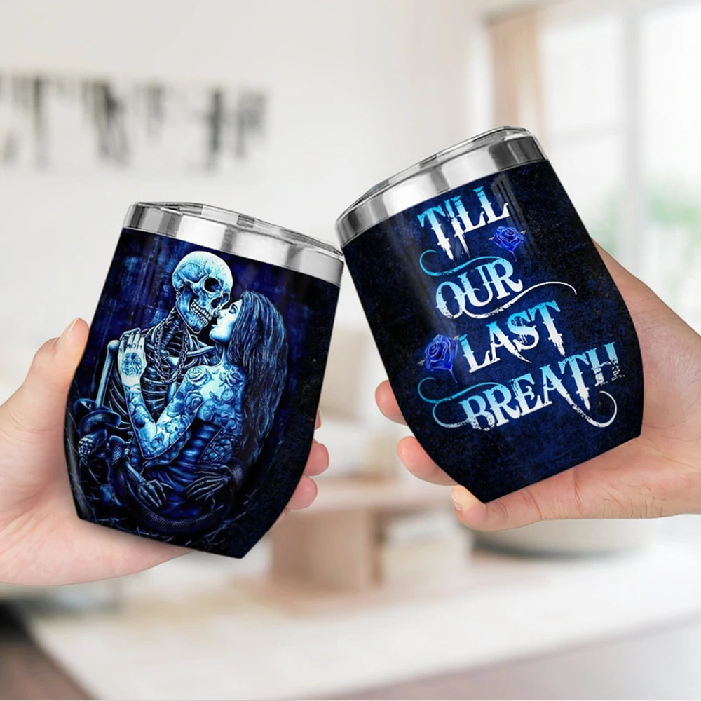 Couple Skull Till Our Last Breath Wine Tumbler