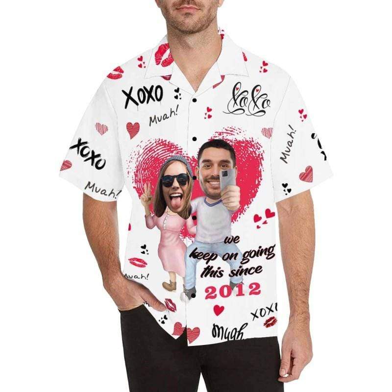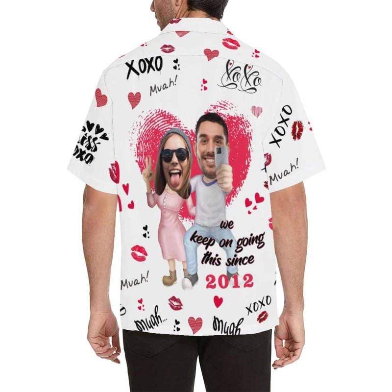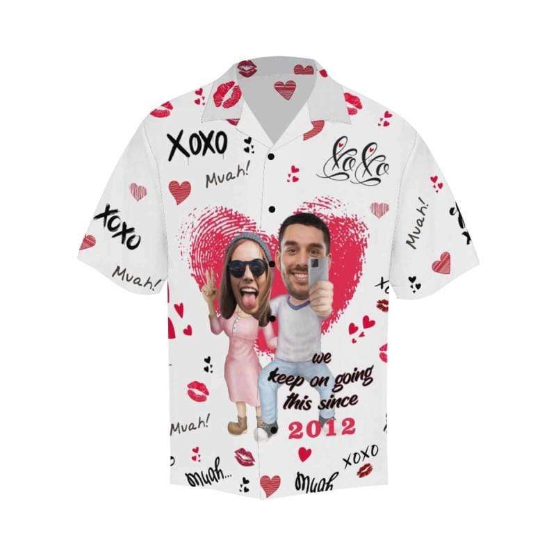Custom Couple Face&Text Anniversary Photo Men’S All Over Print Hawaiian Shirt