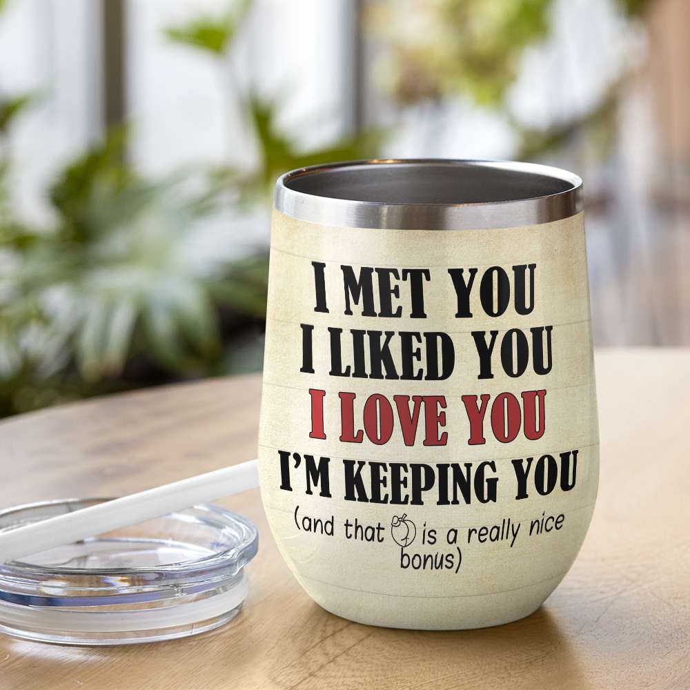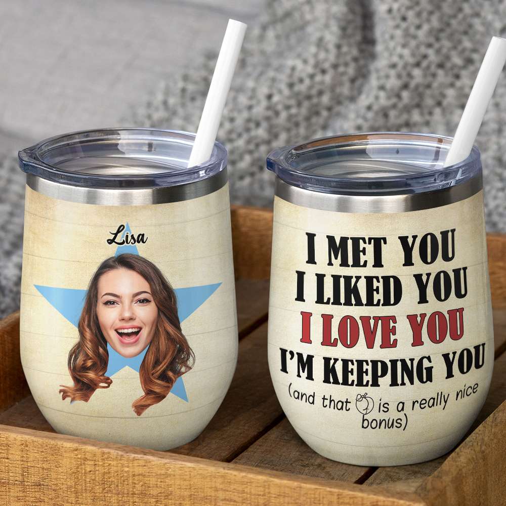 Custom Couple Photo Face Wine Tumbler – I Met You I Liked You Love You I’M Keeping You