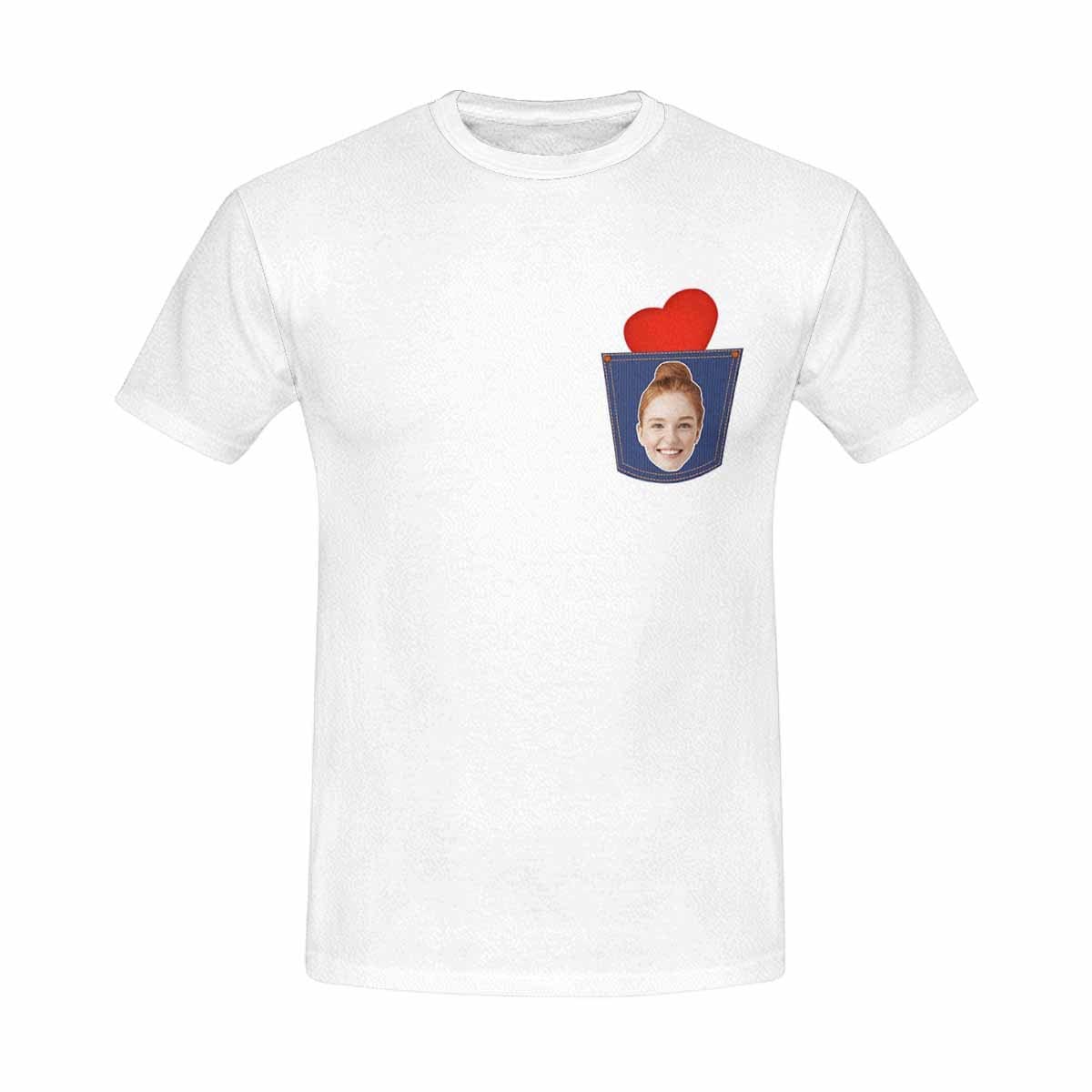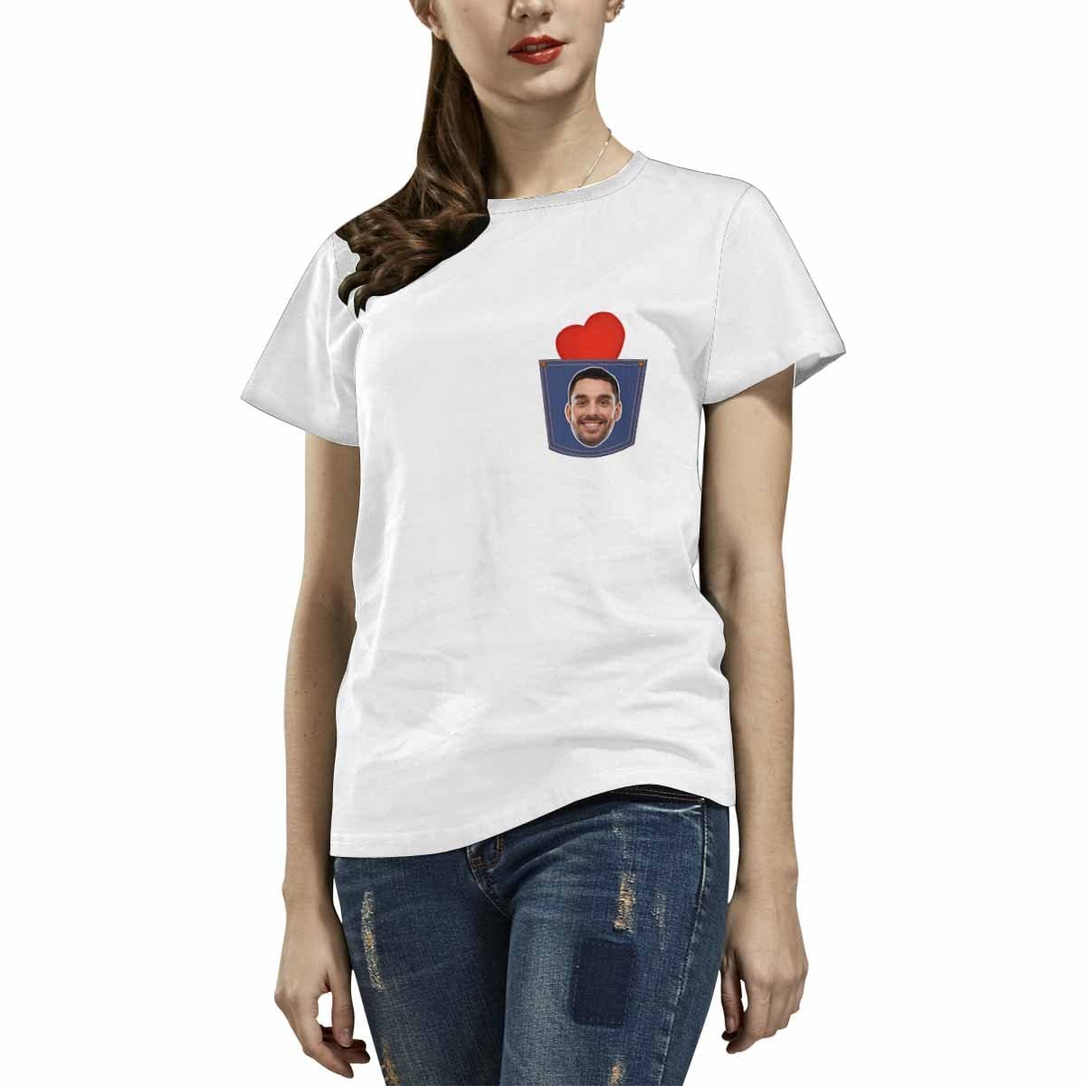 Custom Girlfriend Face Red Love Denim Pocket Matching Couple T Shirts