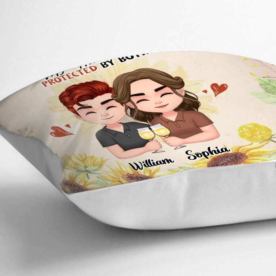 Custom Personalized Chibi Couple Pillow Cover – Gift Idea For Couple – Blessed By God, Spoiled By My Husband, Protected By Both