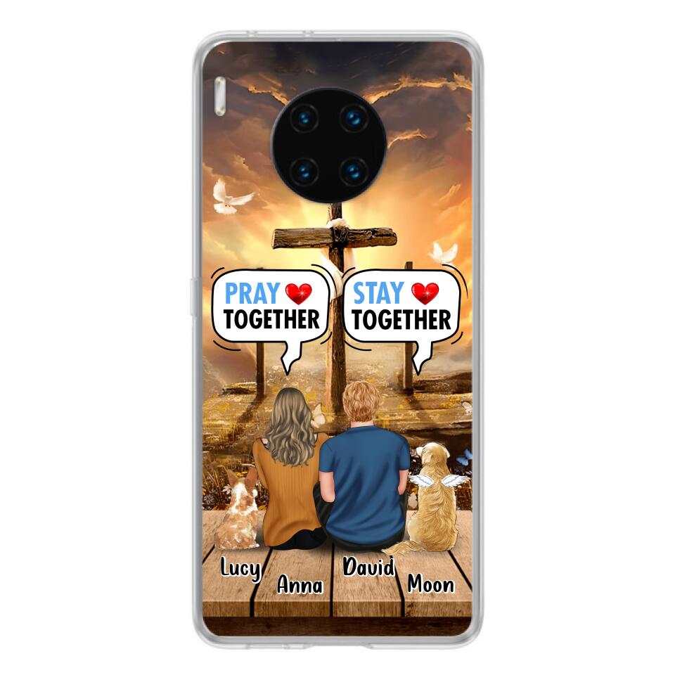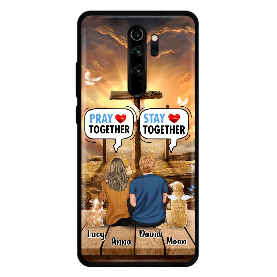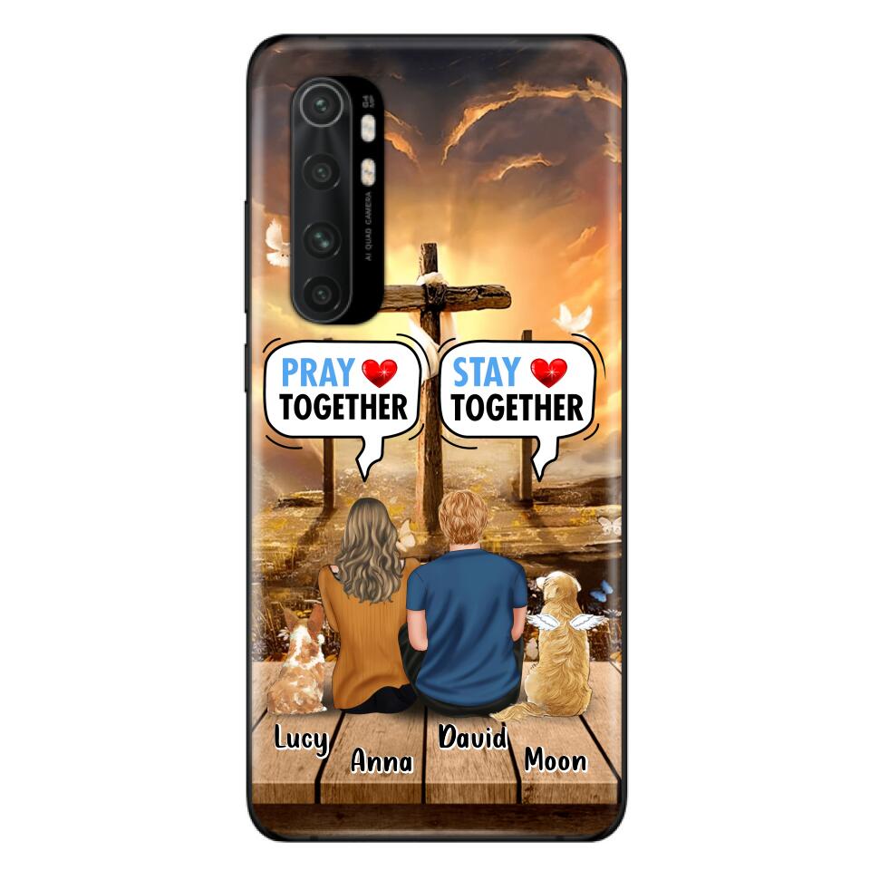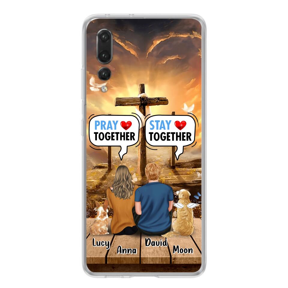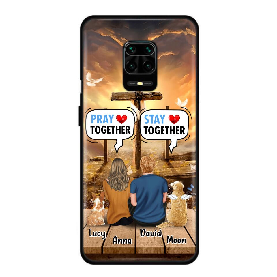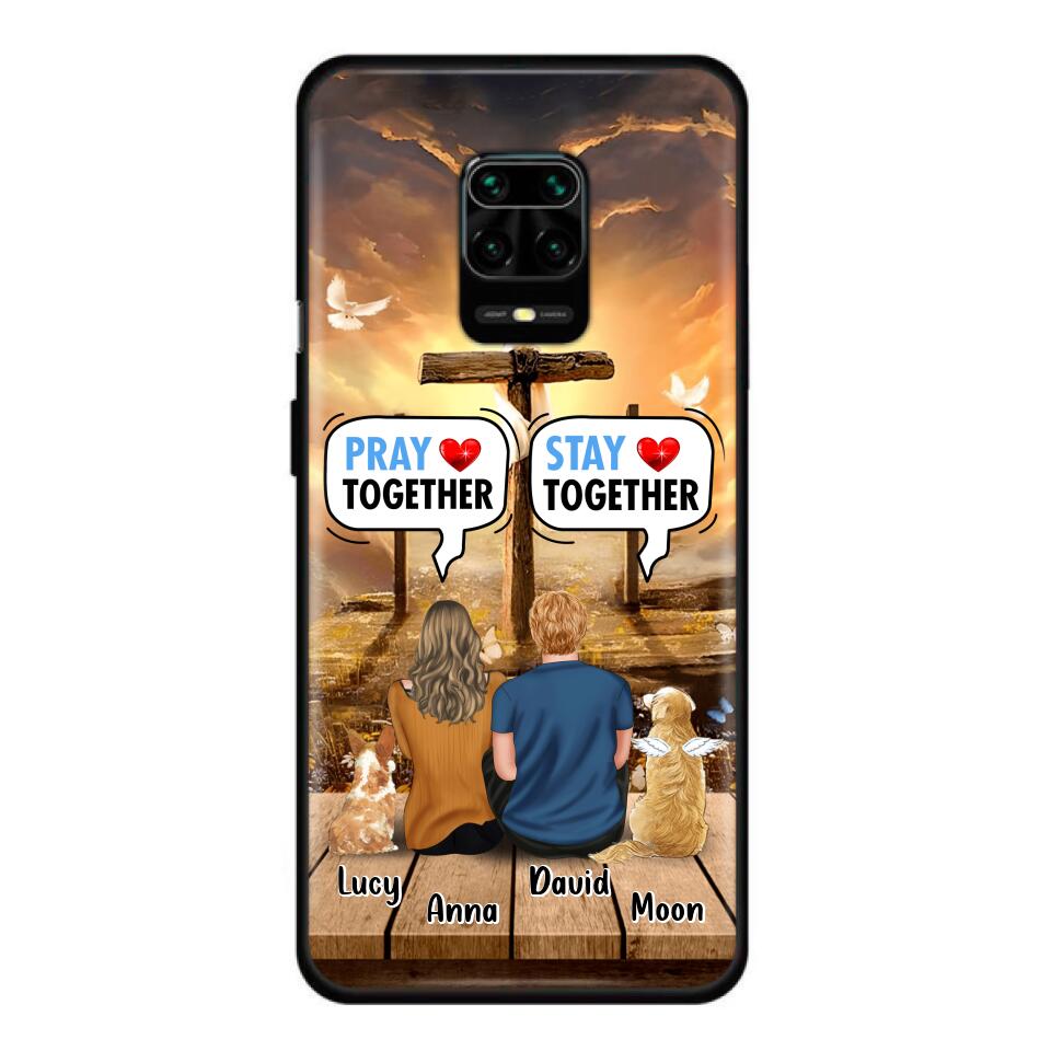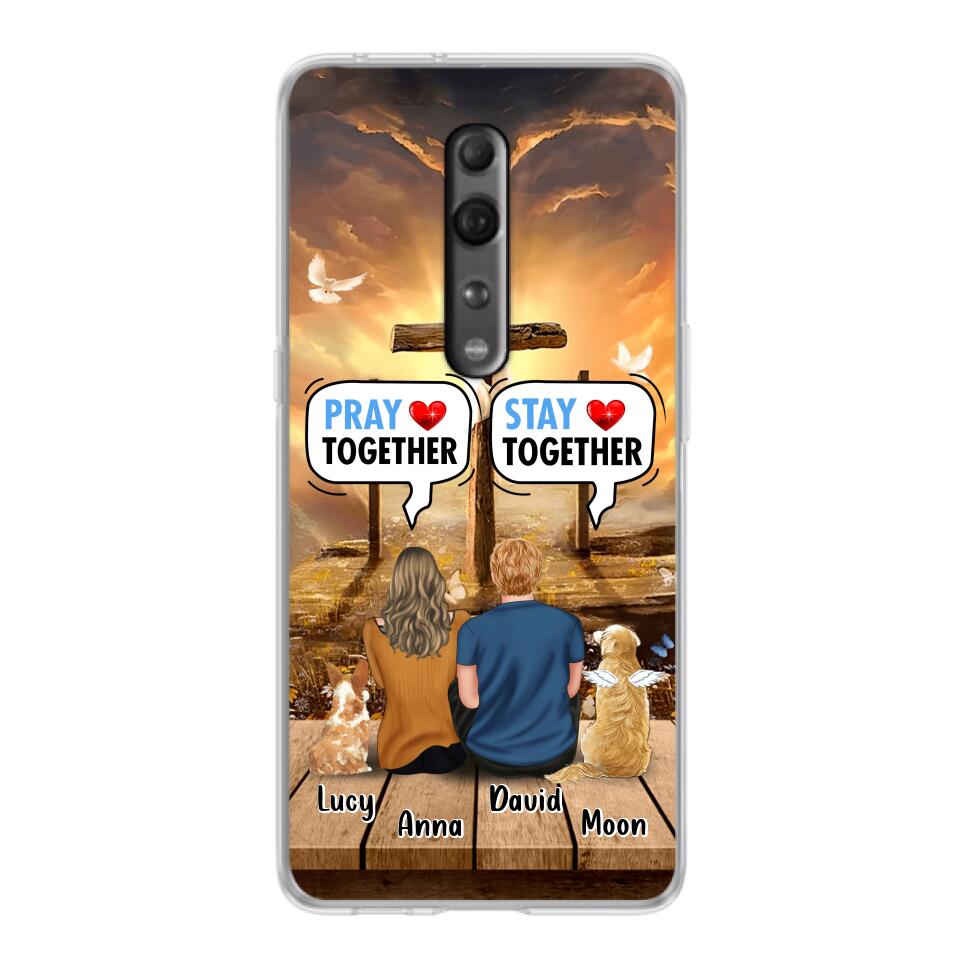 Custom Personalized Couple With Pet Phone Case – Couple With Upto 2 Pets – Gift Idea For Dog/Cat Lover – Pray Together Stay Together – Case For Xiaomi, Oppo And Huawei