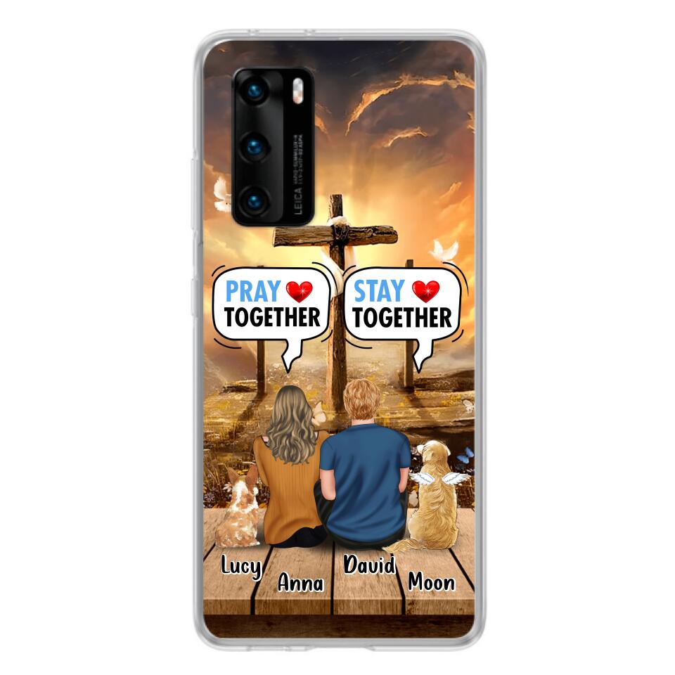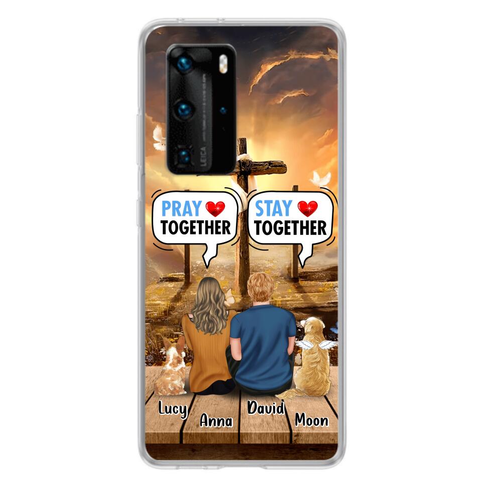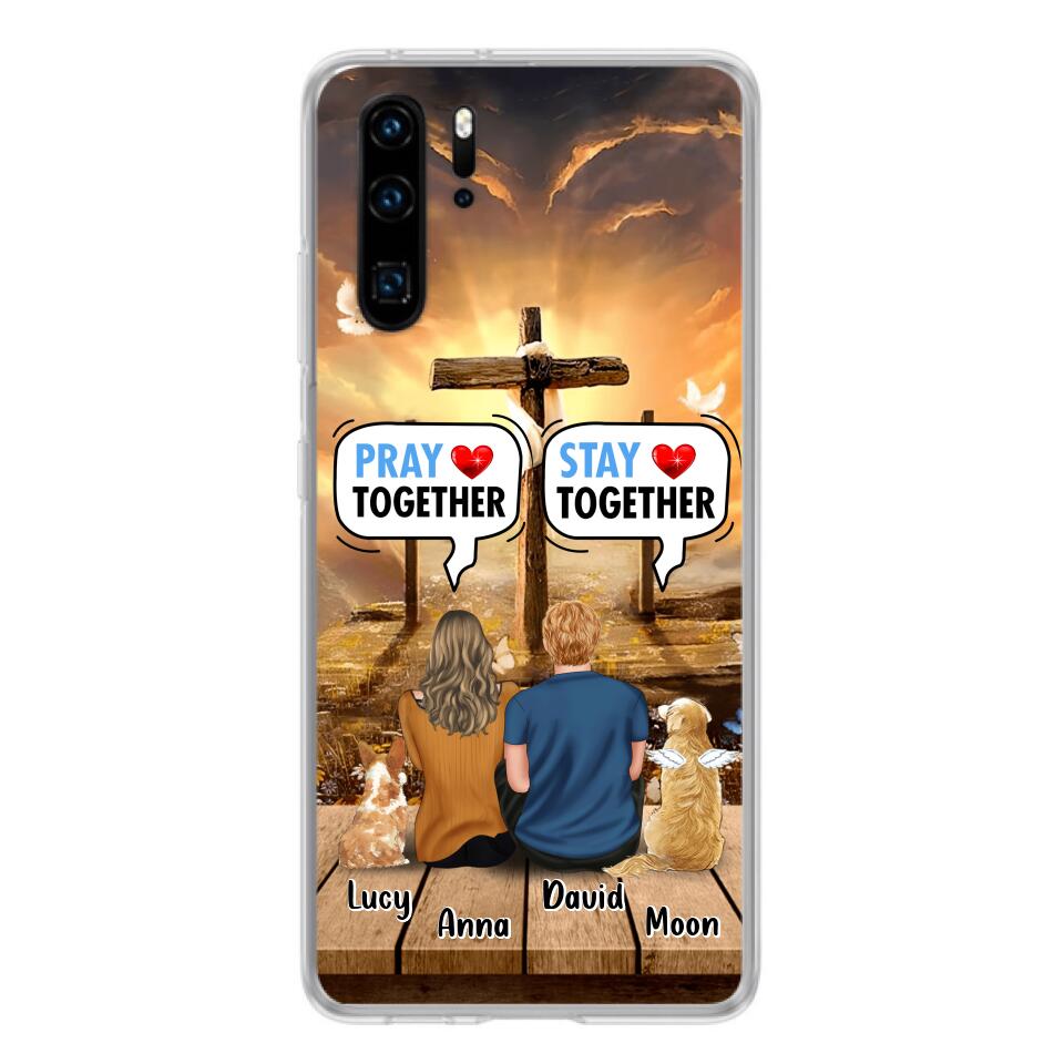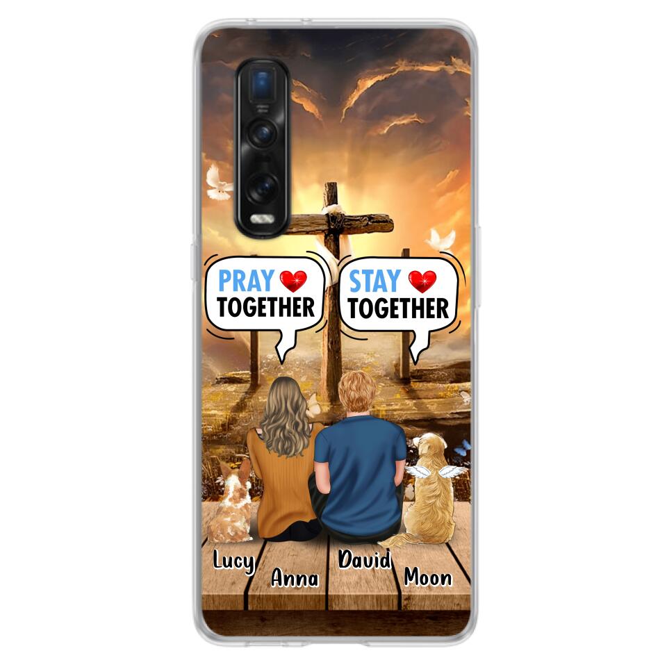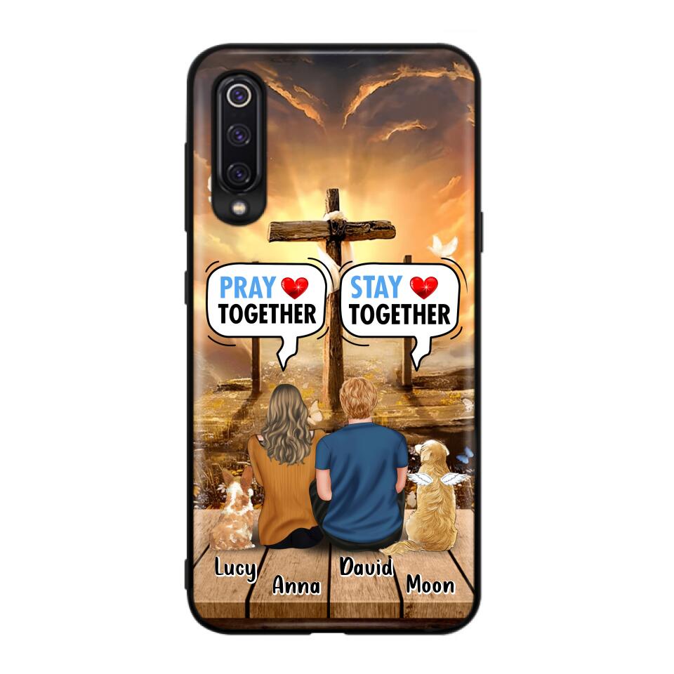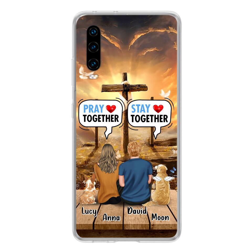 Custom Personalized Couple With Pet Phone Case – Couple With Upto 2 Pets – Gift Idea For Dog/Cat Lover – Pray Together Stay Together – Case For Xiaomi, Oppo And Huawei
