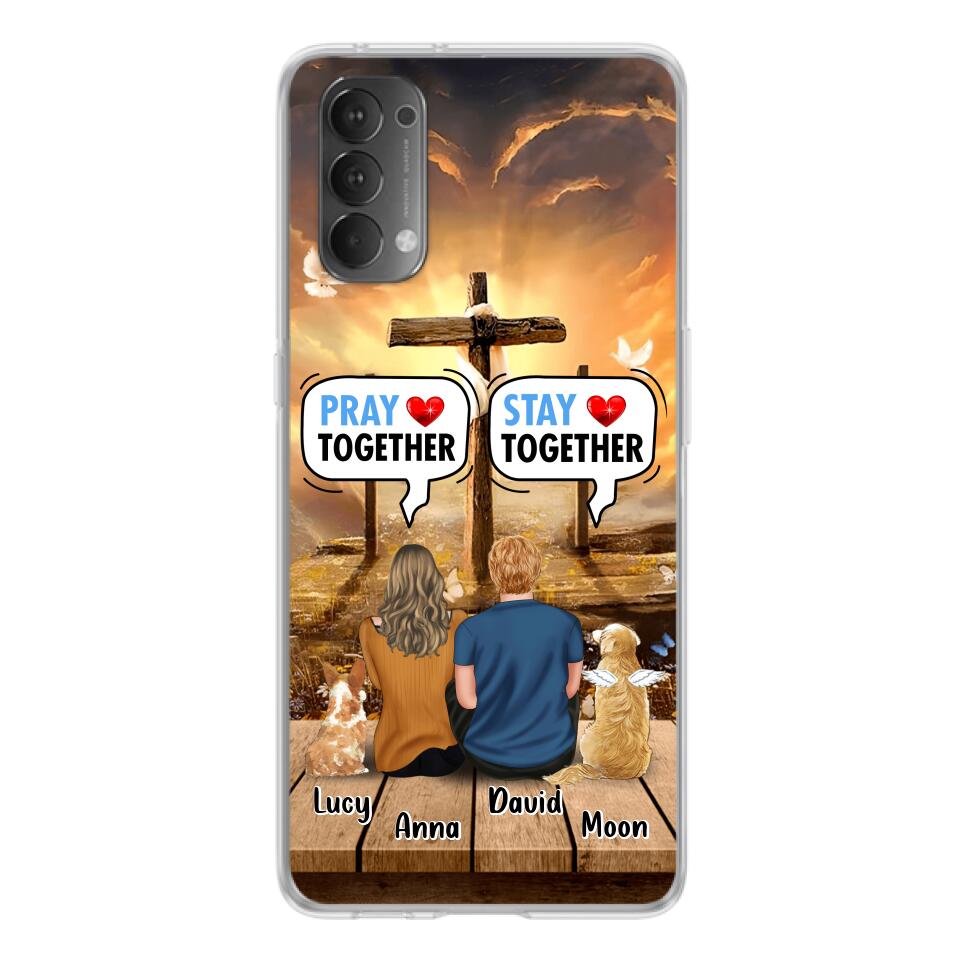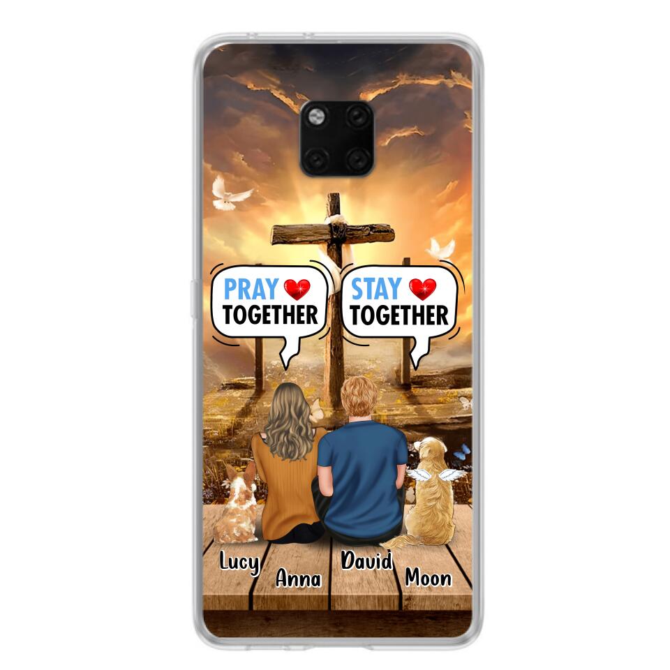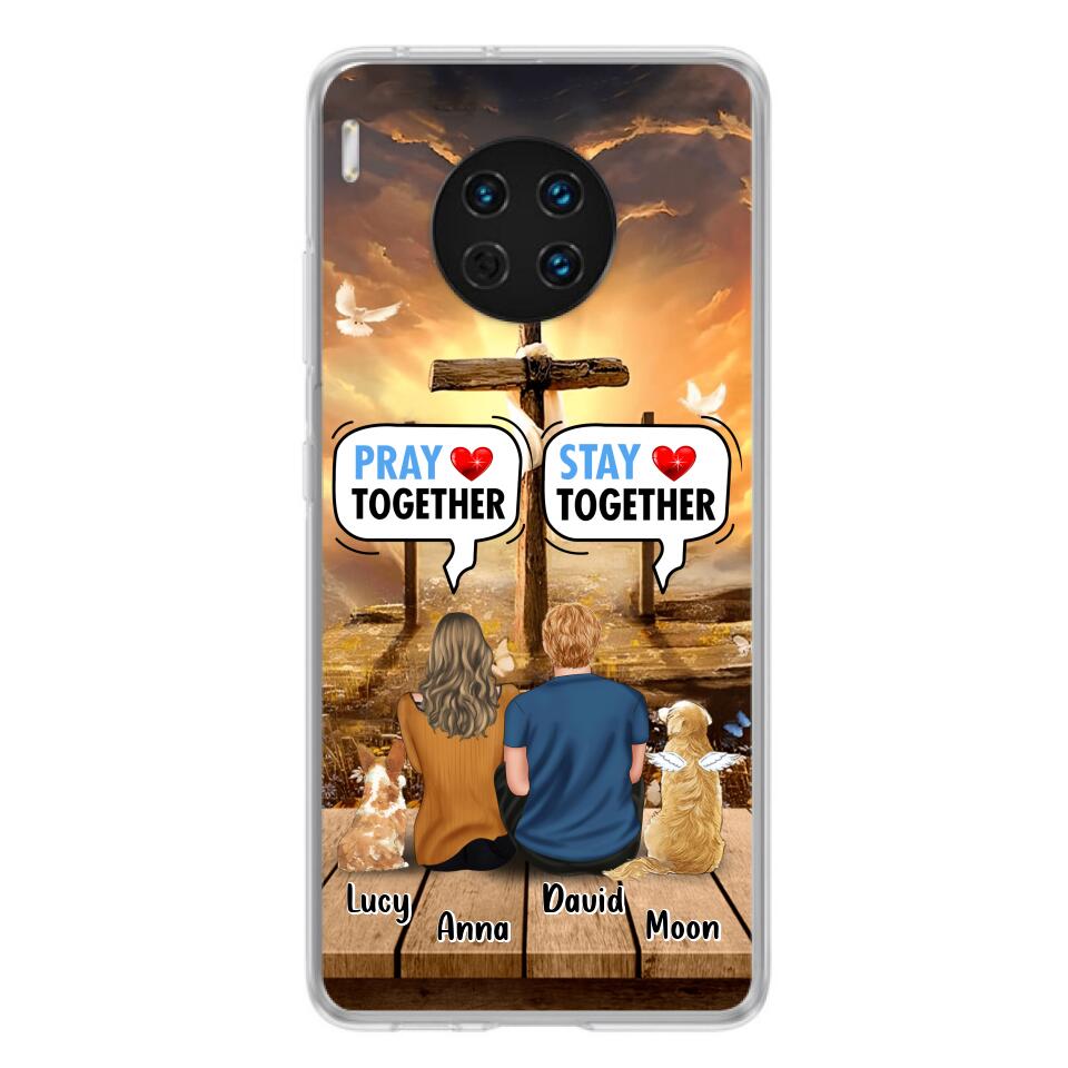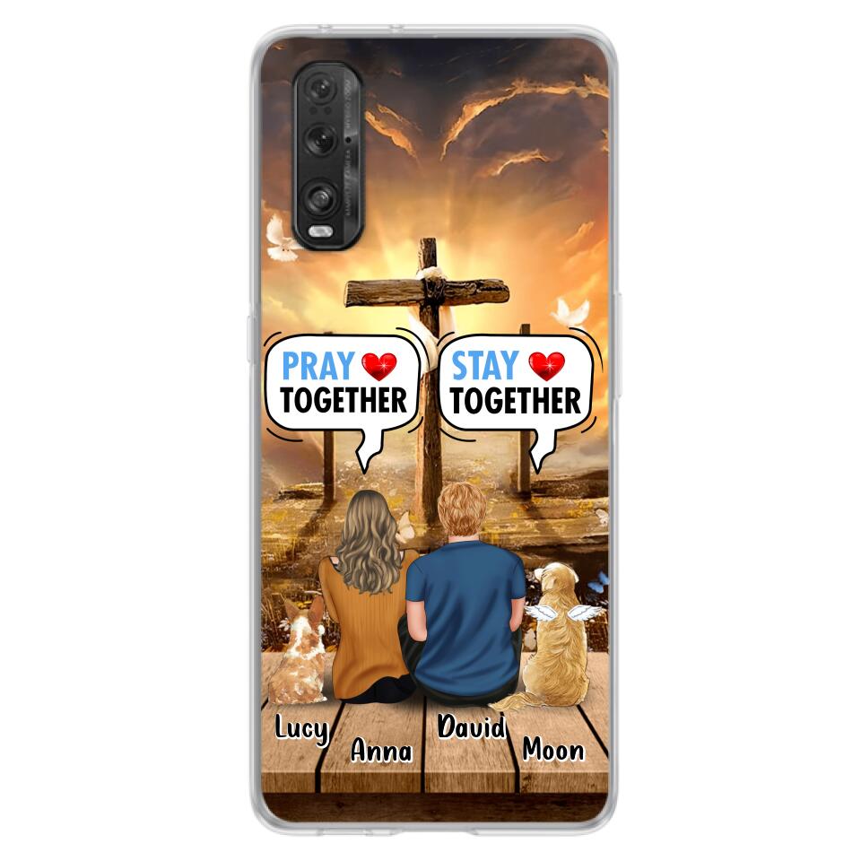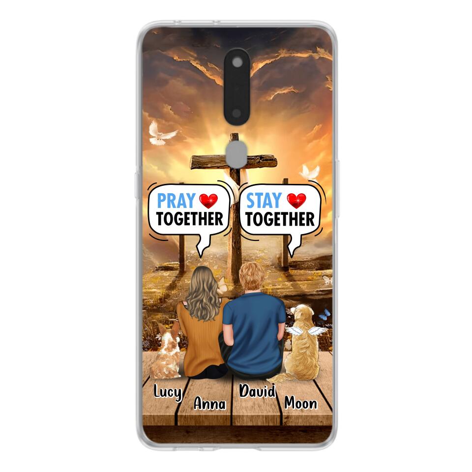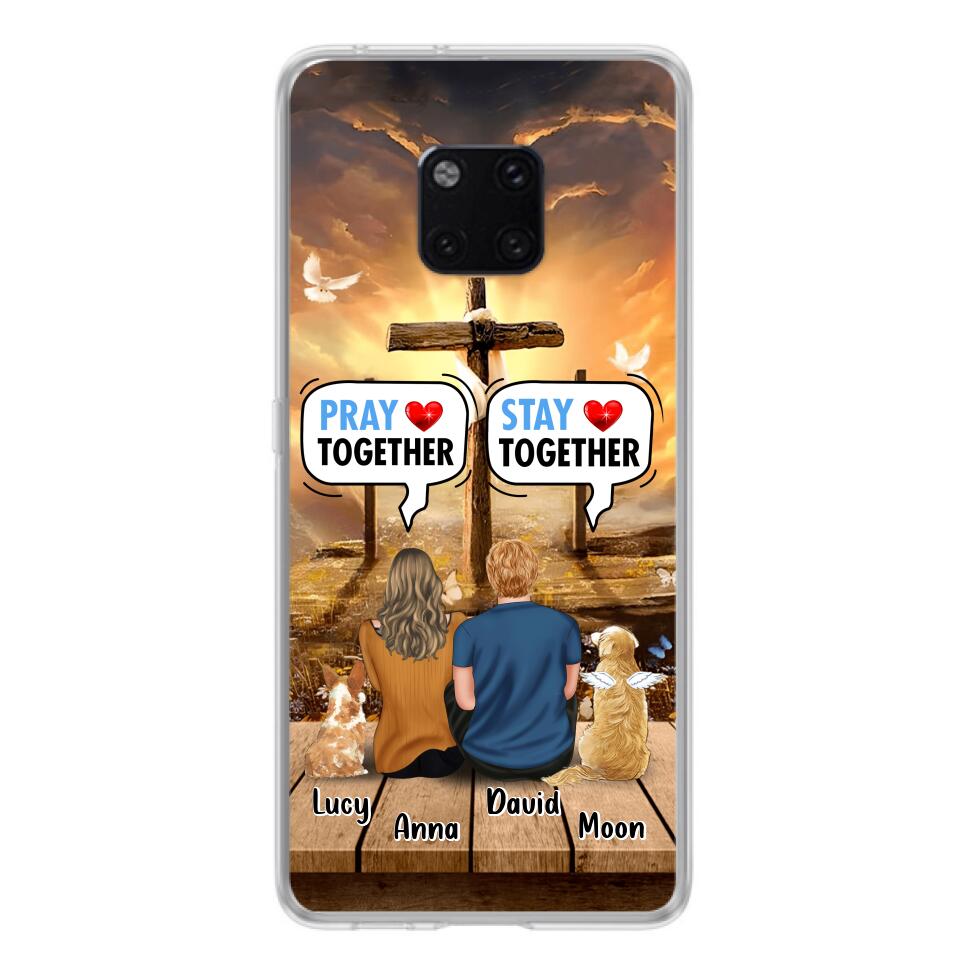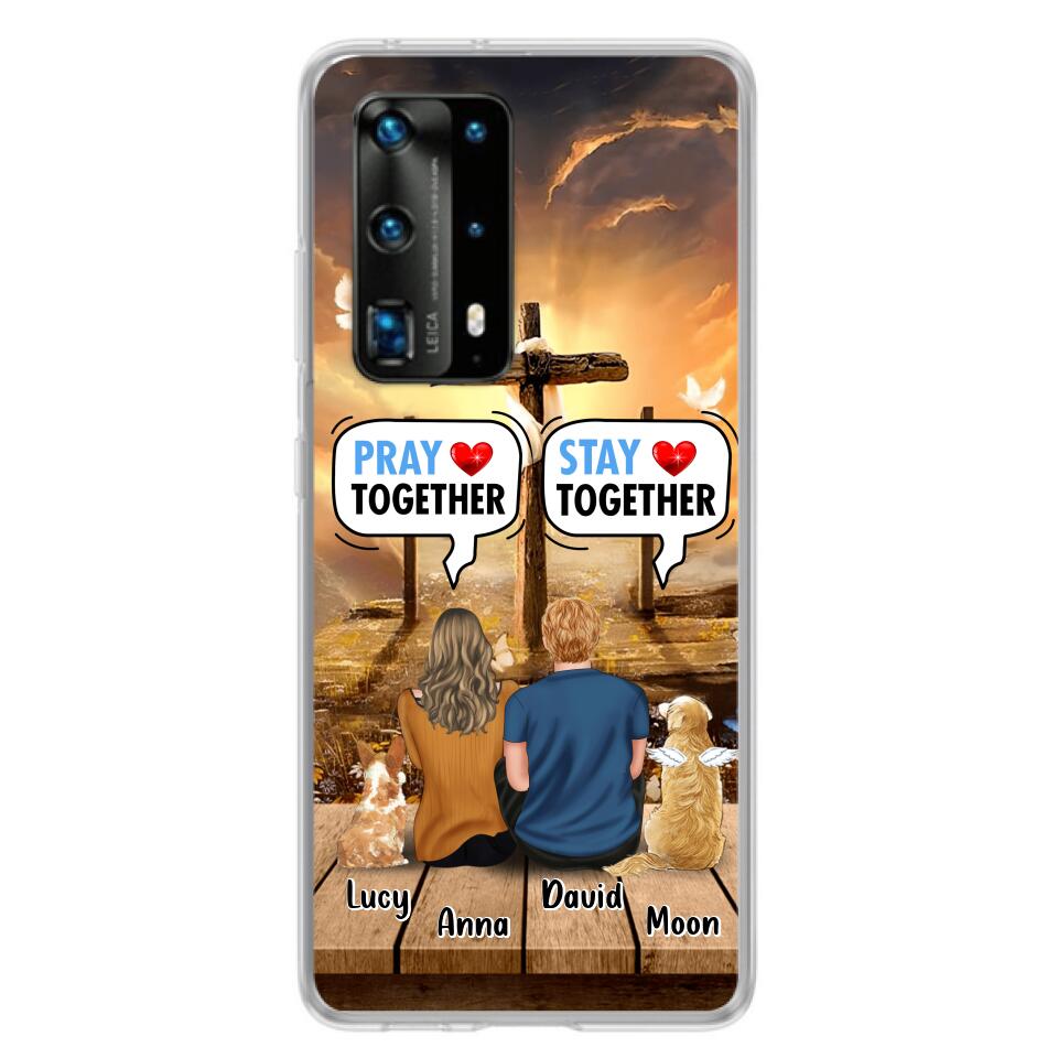 Custom Personalized Couple With Pet Phone Case – Couple With Upto 2 Pets – Gift Idea For Dog/Cat Lover – Pray Together Stay Together – Case For Xiaomi, Oppo And Huawei