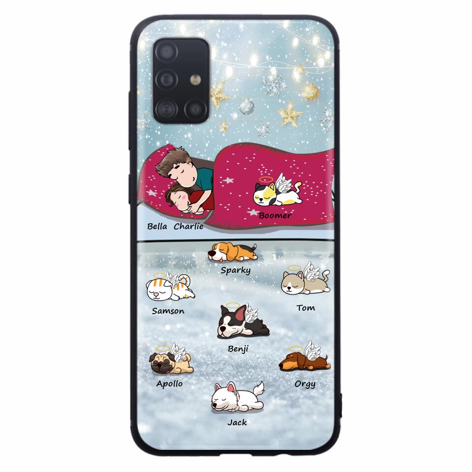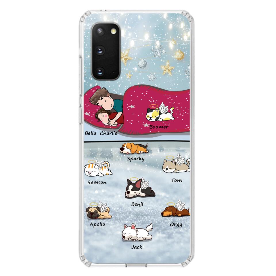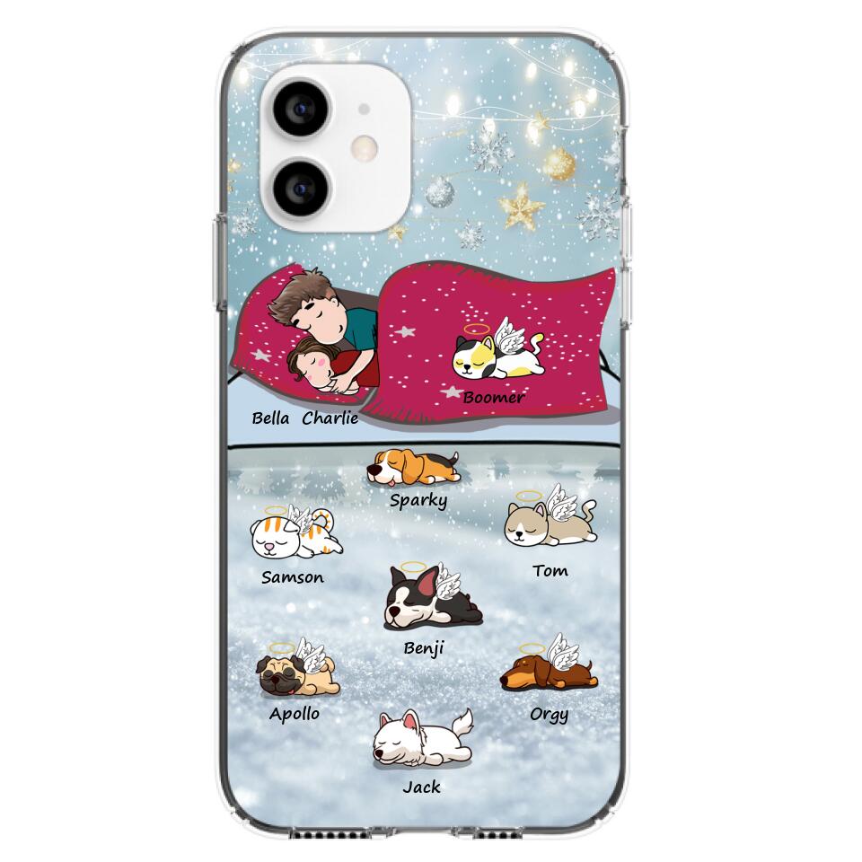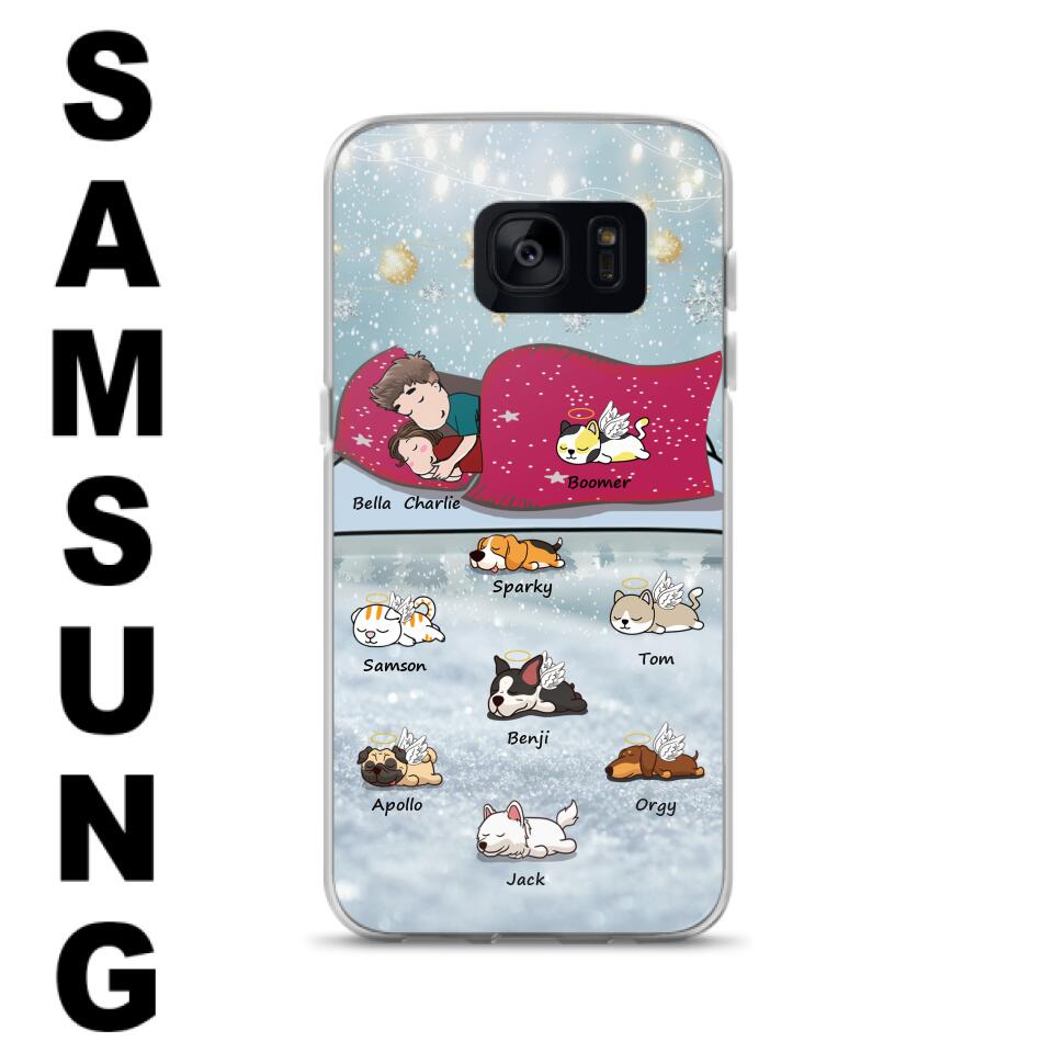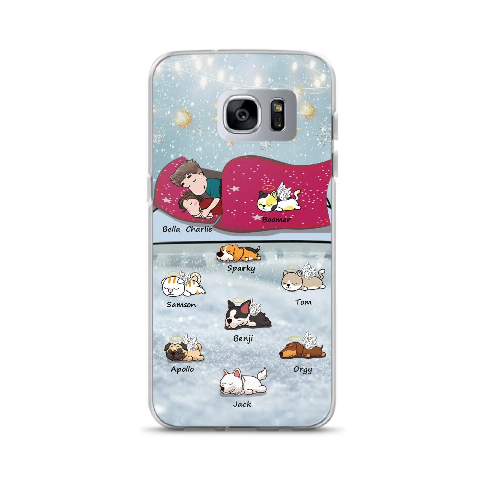 Custom Personalized Couple With Pet Phone Case – Upto 8 Pets – Best Gift For Dog/ Cat Lover – Case For Iphone And Samsung