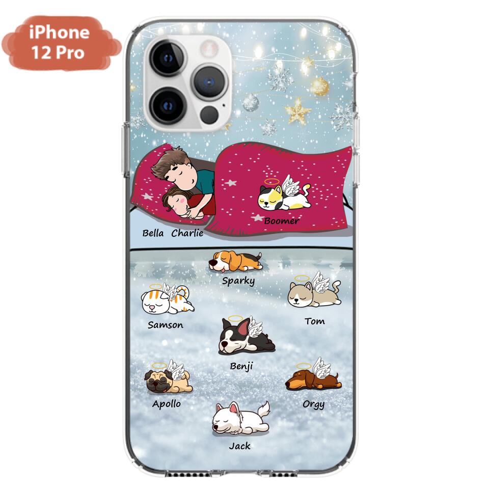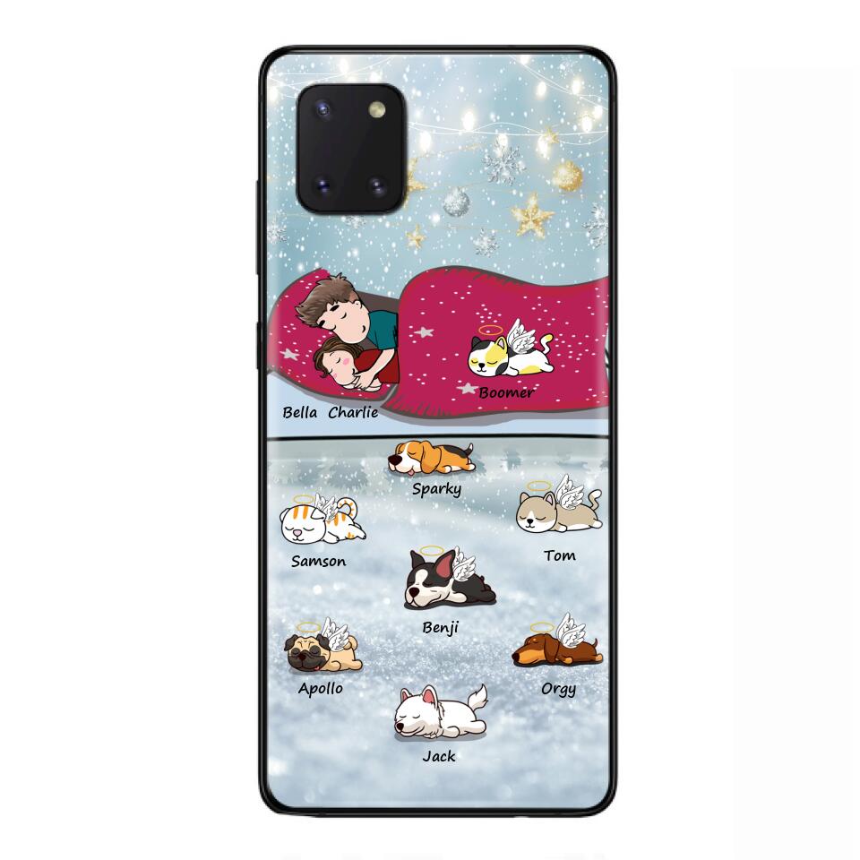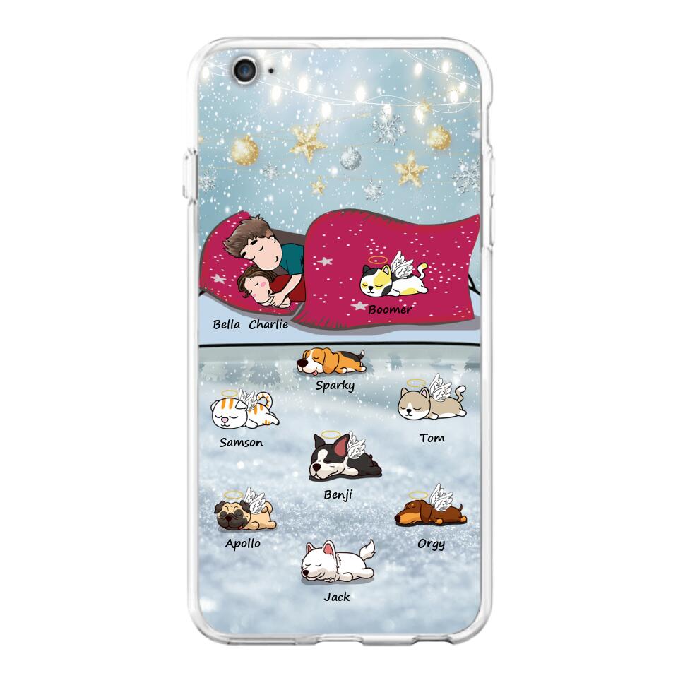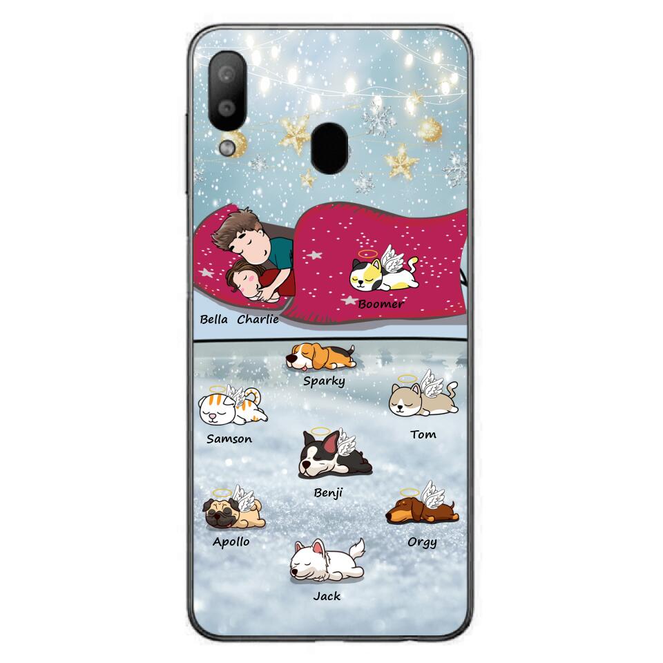 Custom Personalized Couple With Pet Phone Case – Upto 8 Pets – Best Gift For Dog/ Cat Lover – Case For Iphone And Samsung