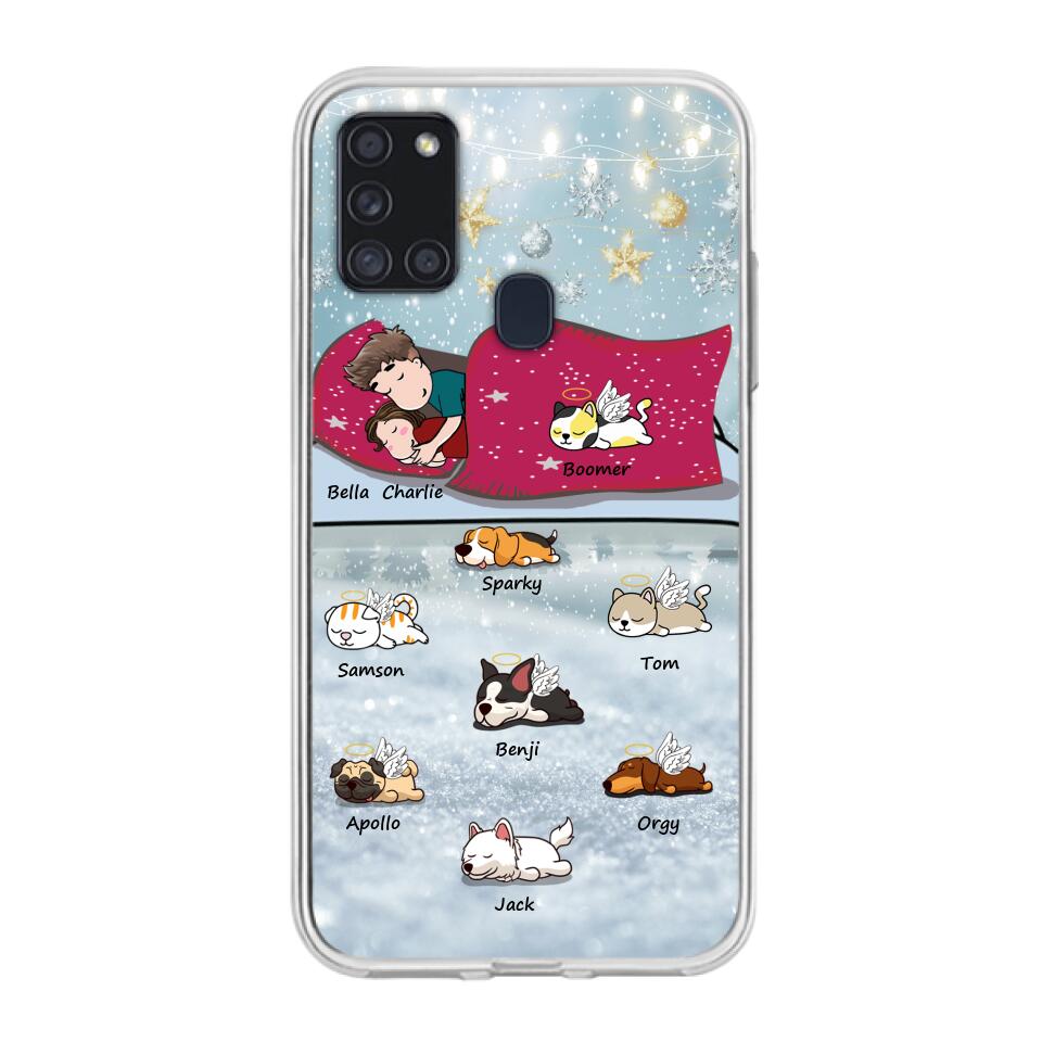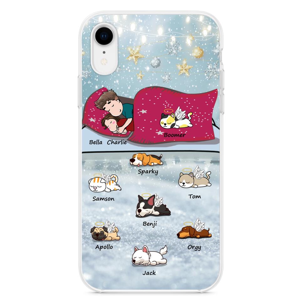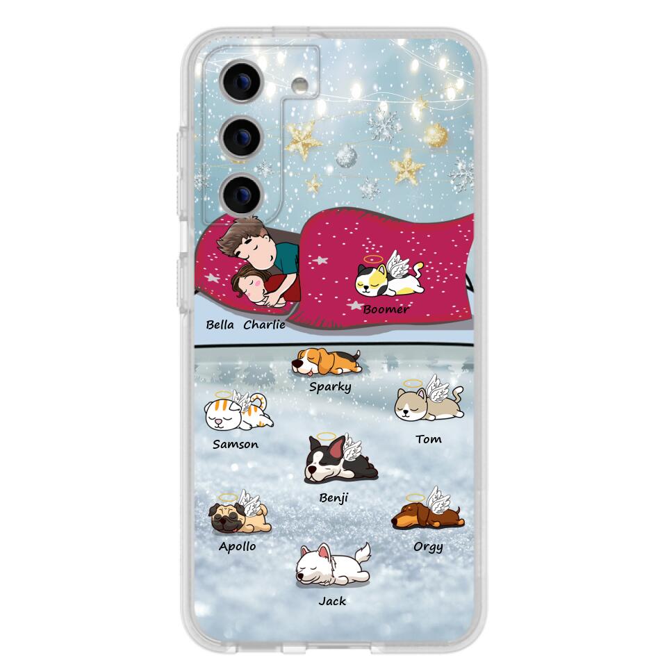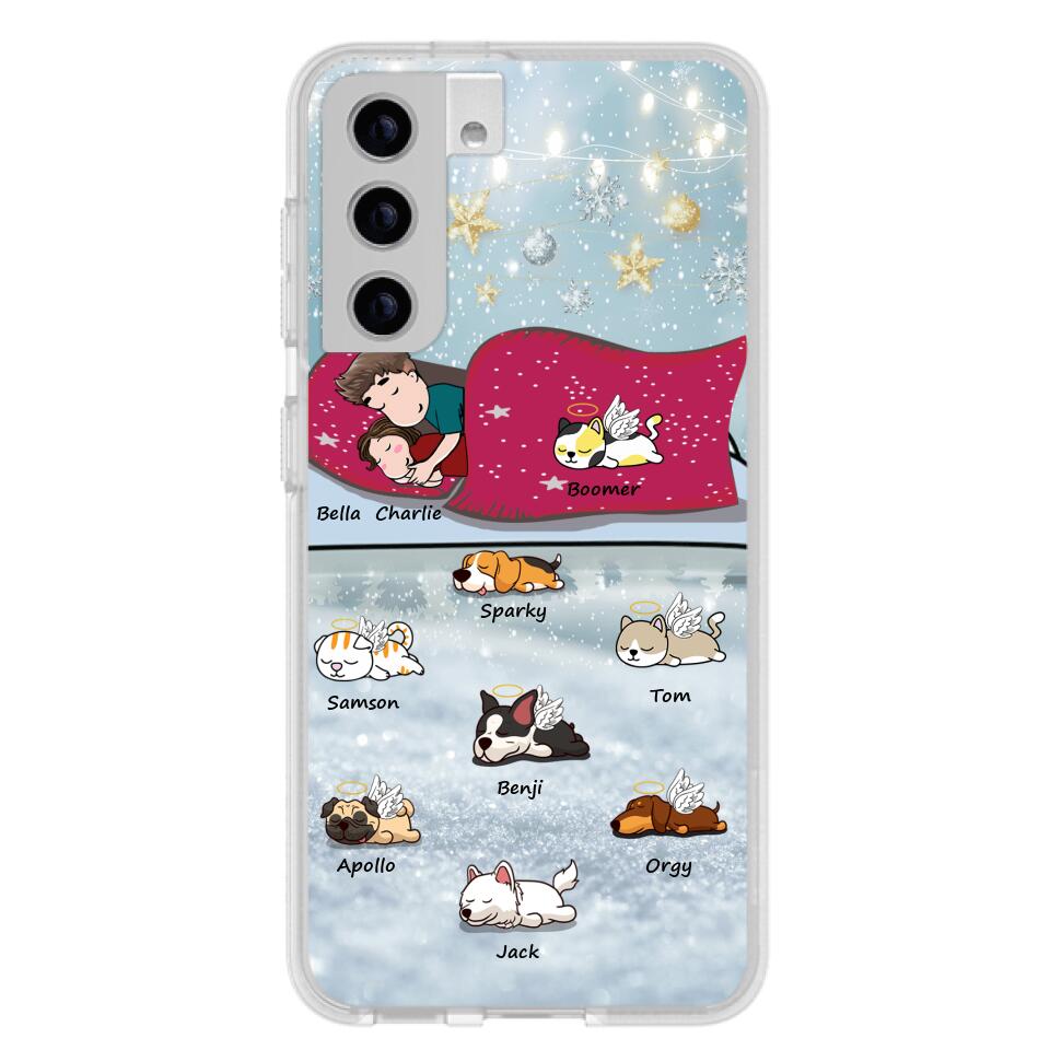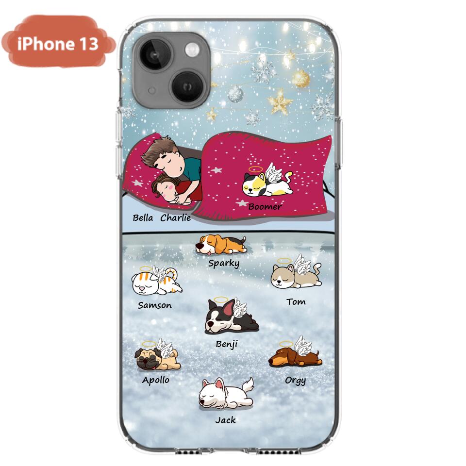 Custom Personalized Couple With Pet Phone Case – Upto 8 Pets – Best Gift For Dog/ Cat Lover – Case For Iphone And Samsung