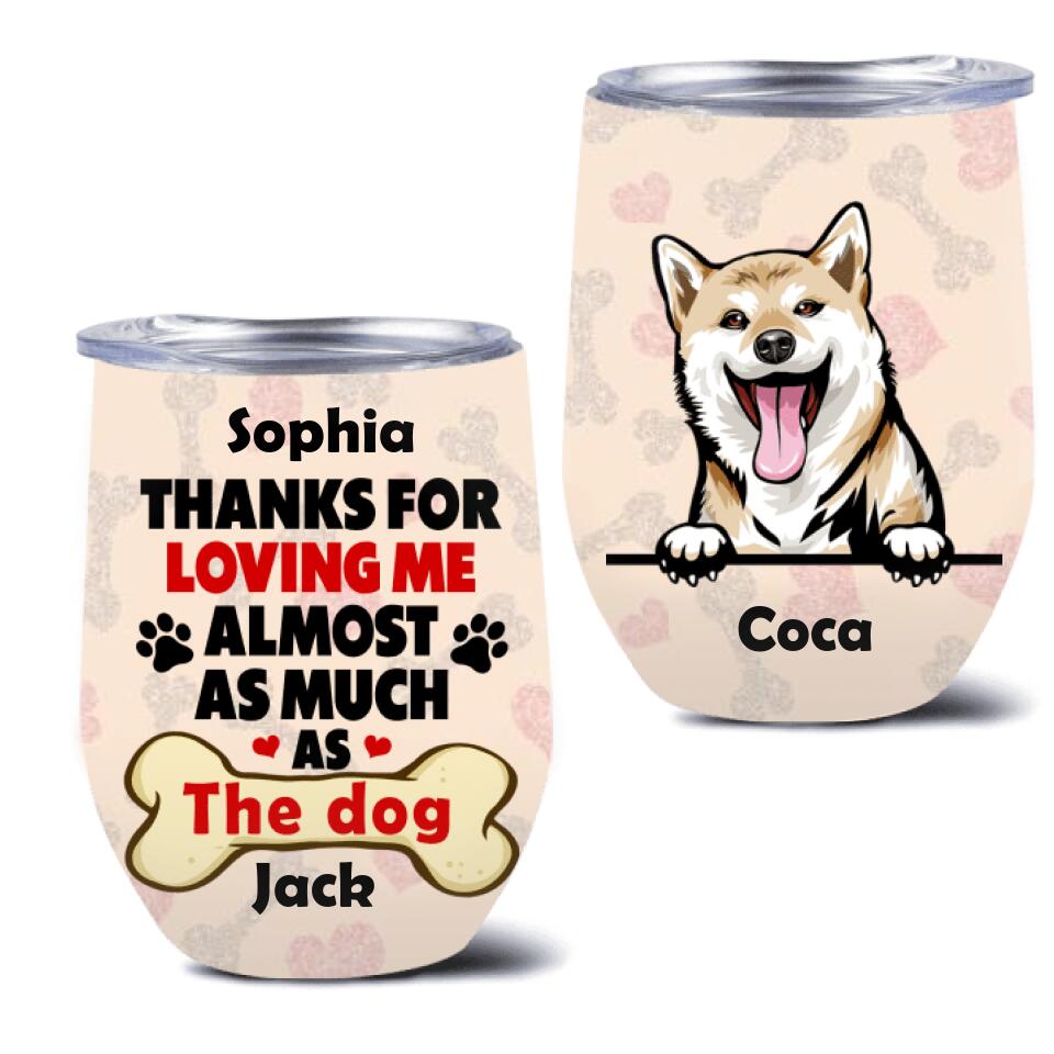 Custom Personalized Dog Wine Tumbler – Gift For Couples, Dog Lovers – Up To 5 Dogs – Thanks For Loving Me Almost As Much As The Dog