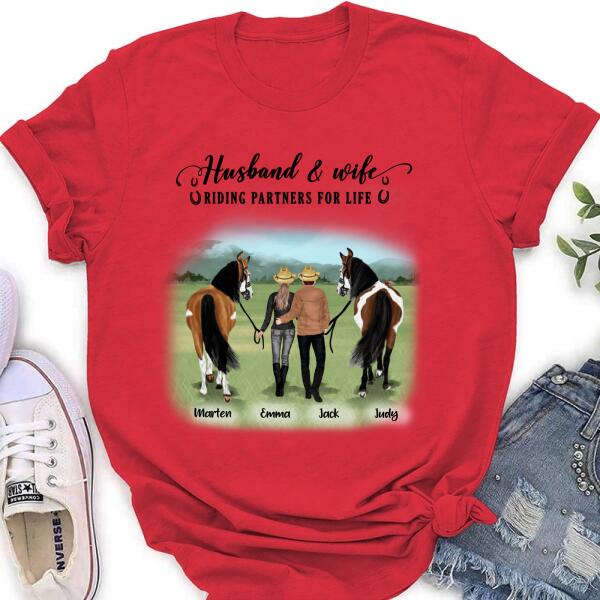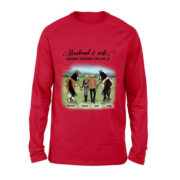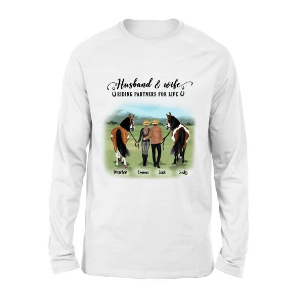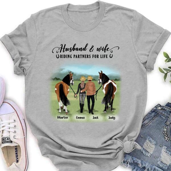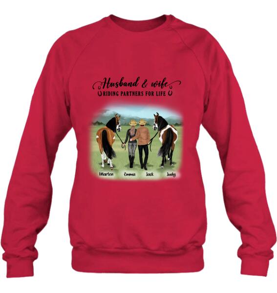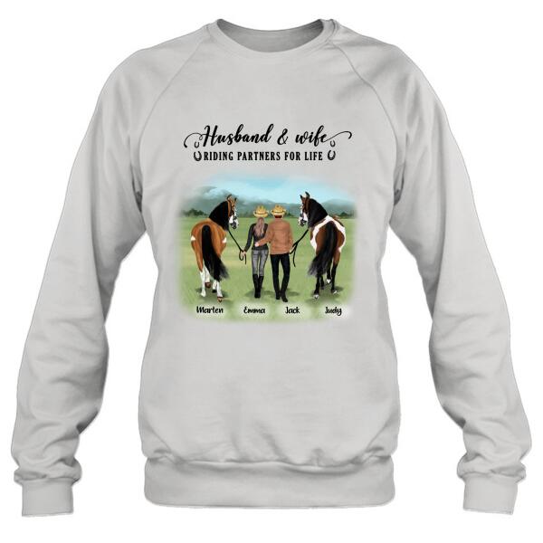 Custom Personalized Horse Couple T-Shirt/Hoodie/Sweatshirt/Sleeve – Best Gift For Couple, Lover – Husband And Wife Riding Partners For Life