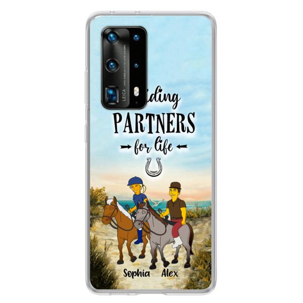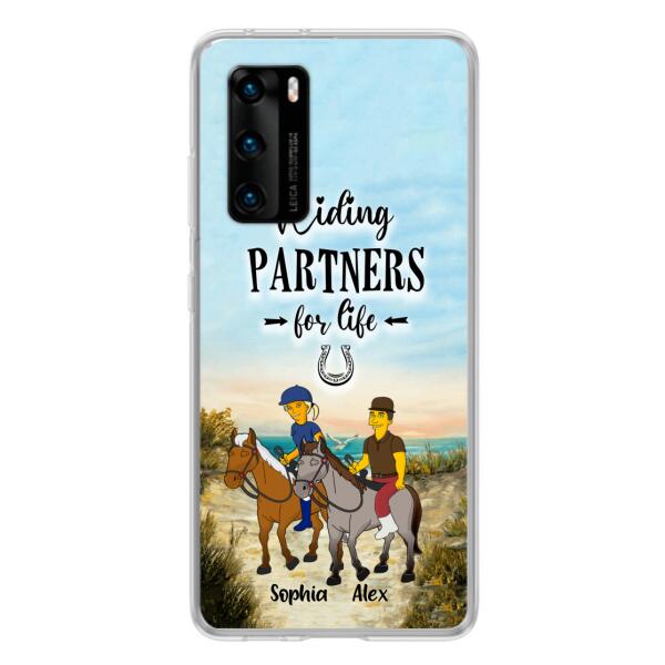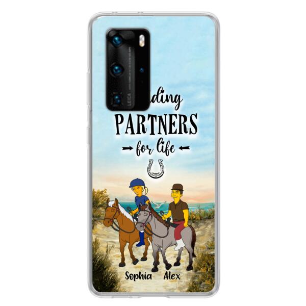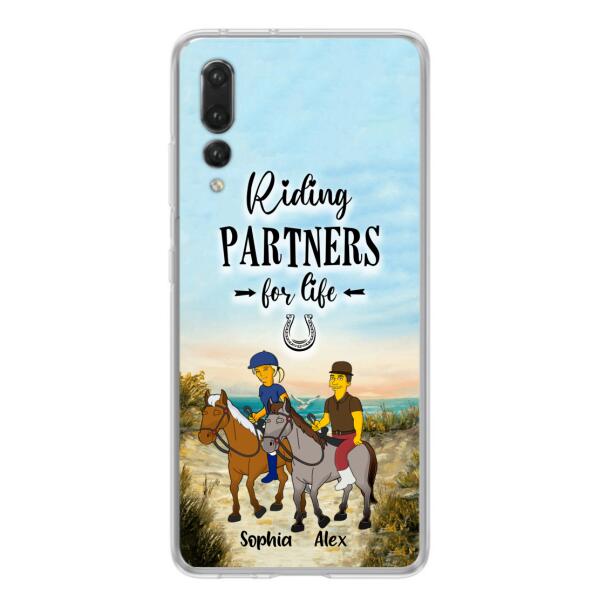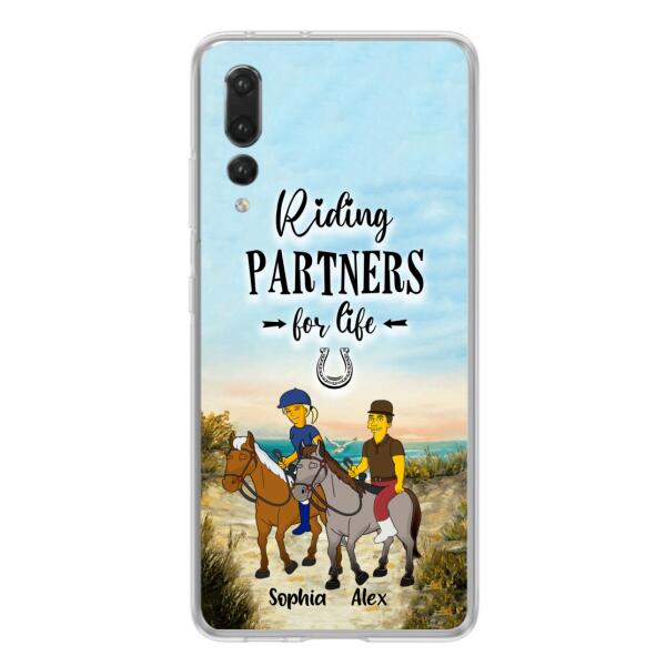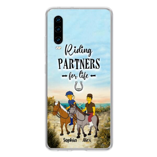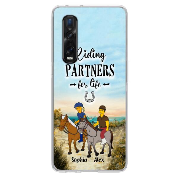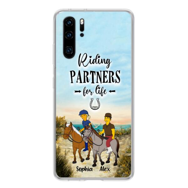 Custom Personalized Horseback Riding Cartoon Portrait From Photo Phone Case – Gift Idea For Couple/ Riding Lover – Case For Xiaomi, Oppo And Huawei
