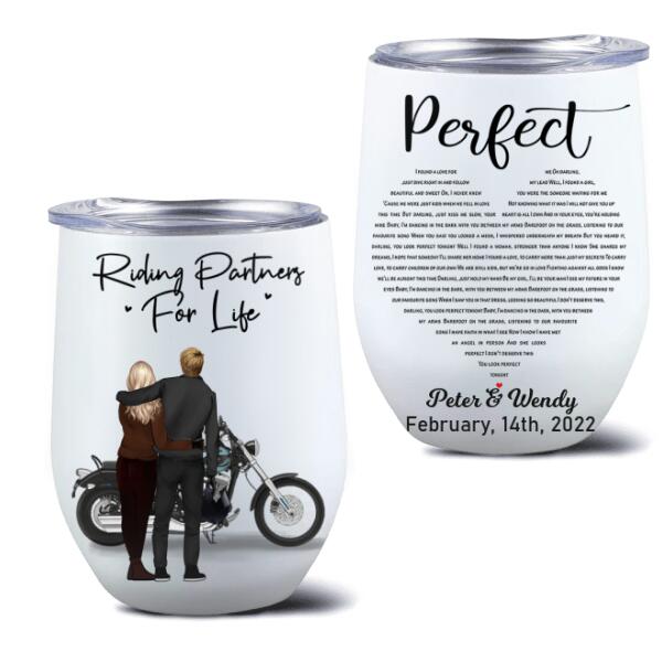 Custom Personalized Perfect Heart Couple Motorbike Wine Tumbler – Valentine’S Day Gift Idea For Couple