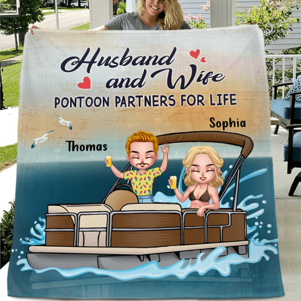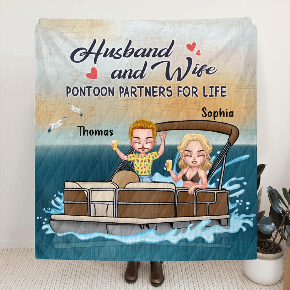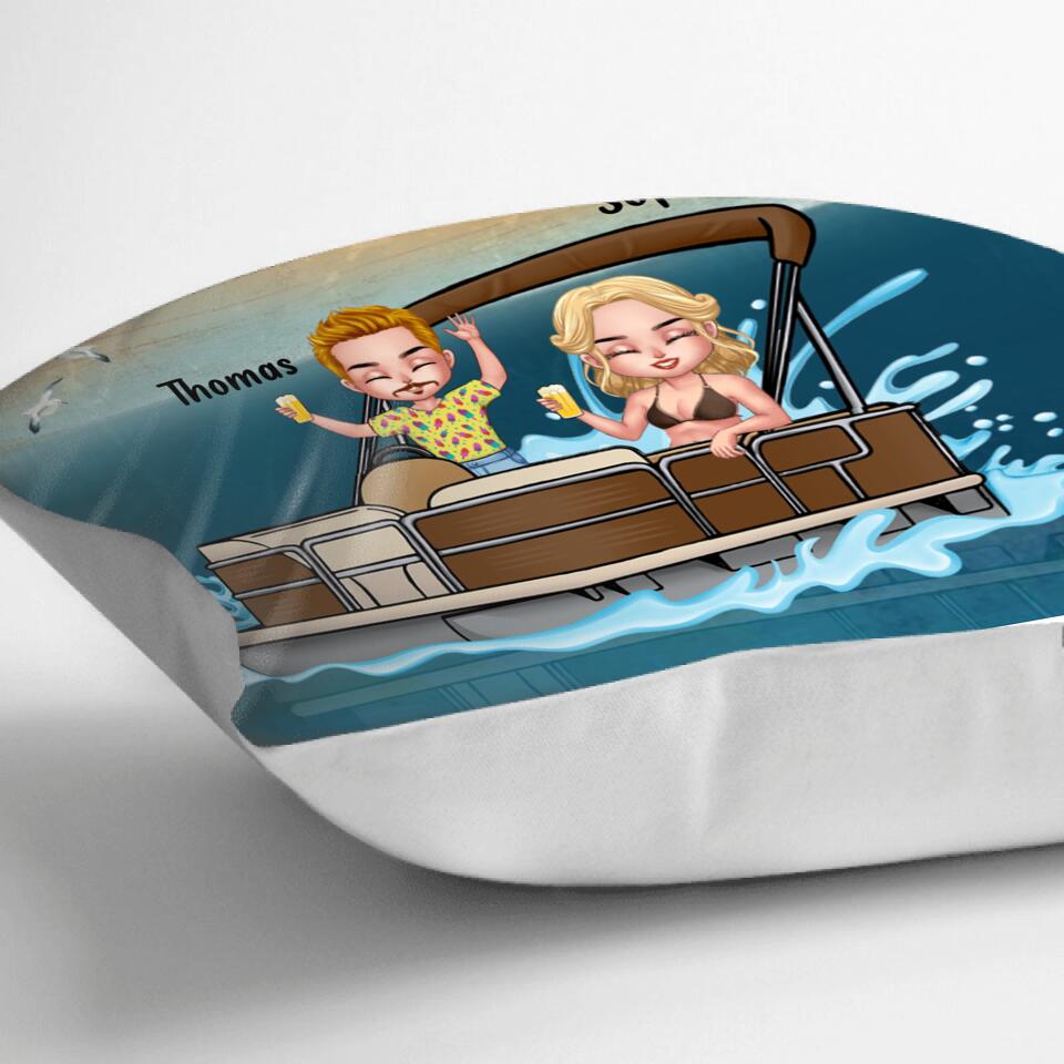 Custom Personalized Pontoon Couple/ Queen/ Captain Pillow Cover & Quilt/ Fleece Blanket – Couple/ Man/ Woman – Pontoon Gift Idea – The Pontoon Boat Is My Happy Place