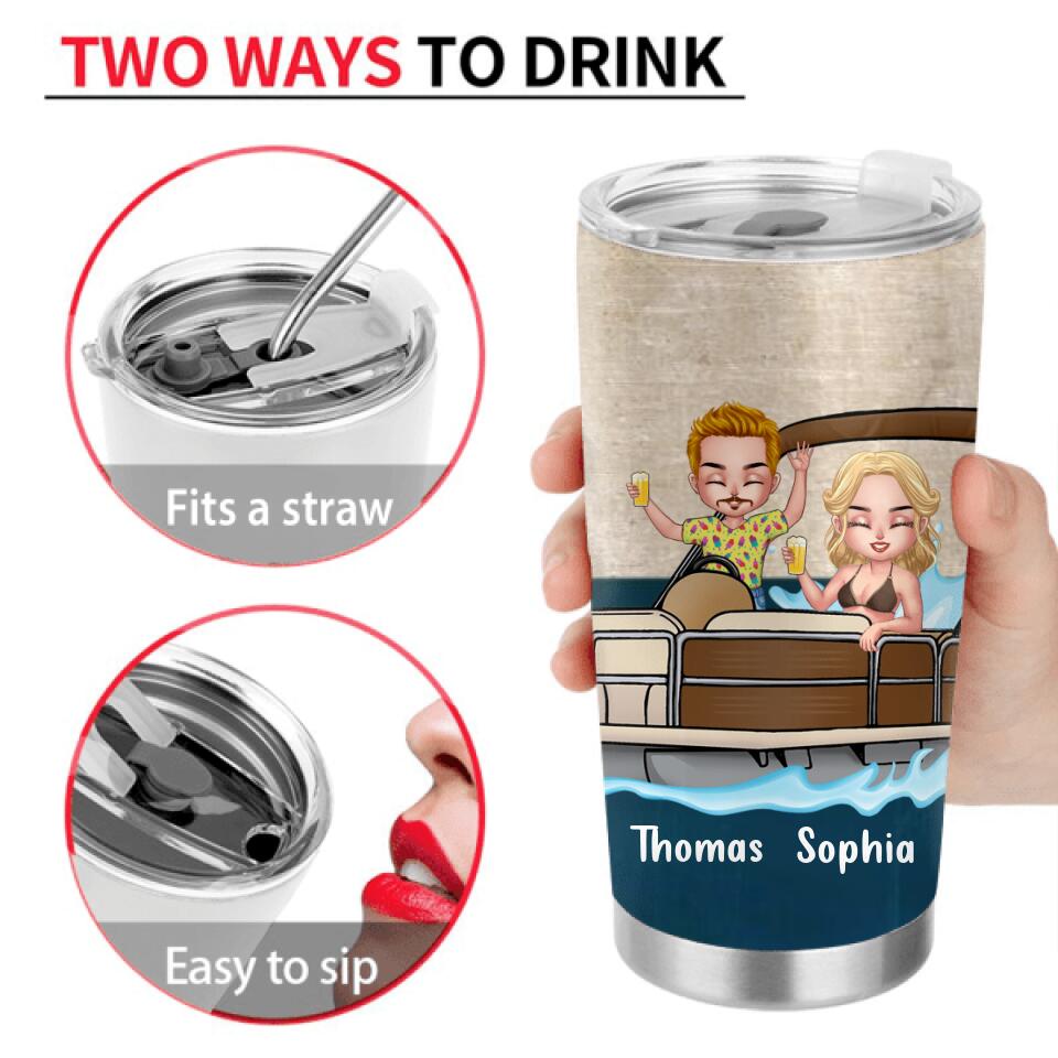 Custom Personalized Pontoon Couple/ Queen/ Captain Tumbler – Couple/ Man/ Woman – Pontoon Gift Idea – Husband And Wife Pontoon Partners For Life