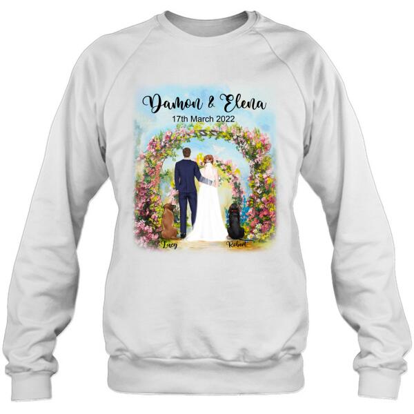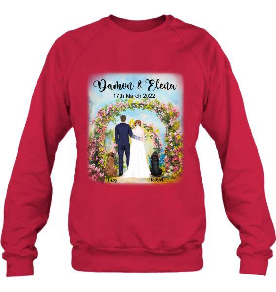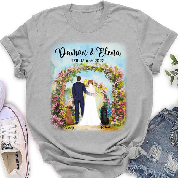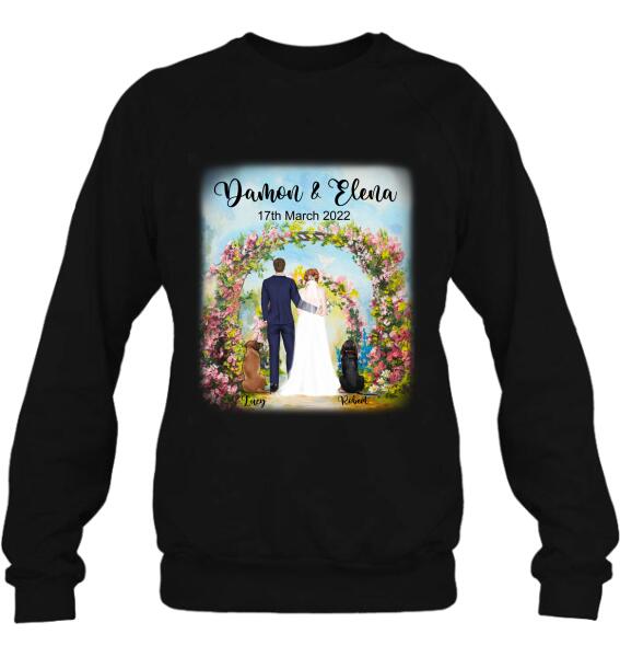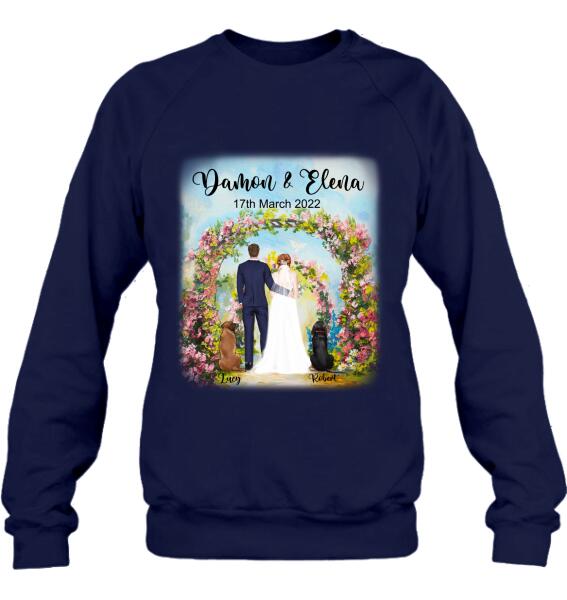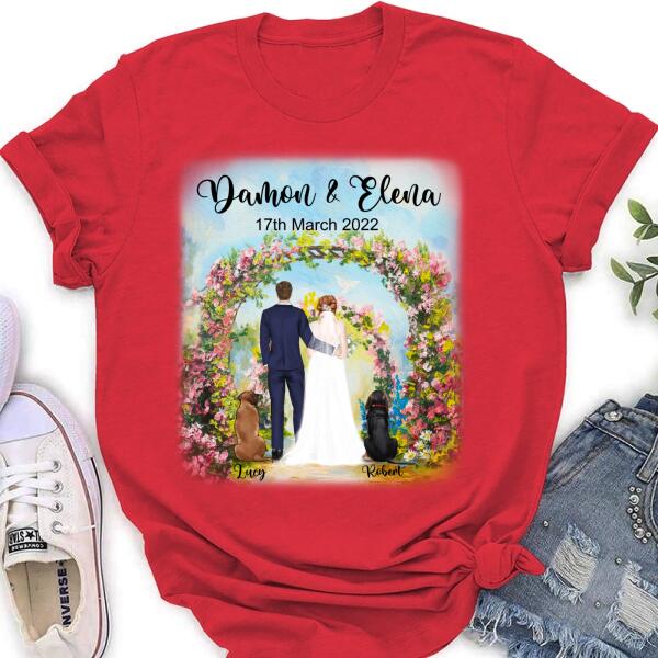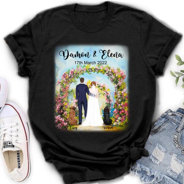 Custom Personalized Wedding T-Shirt – Wedding Gift For Couple – Upto 4 Dogs