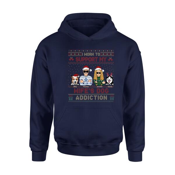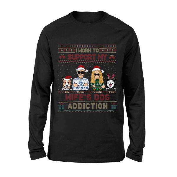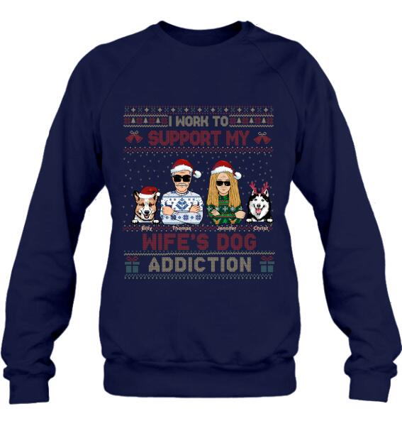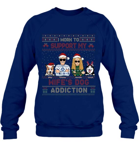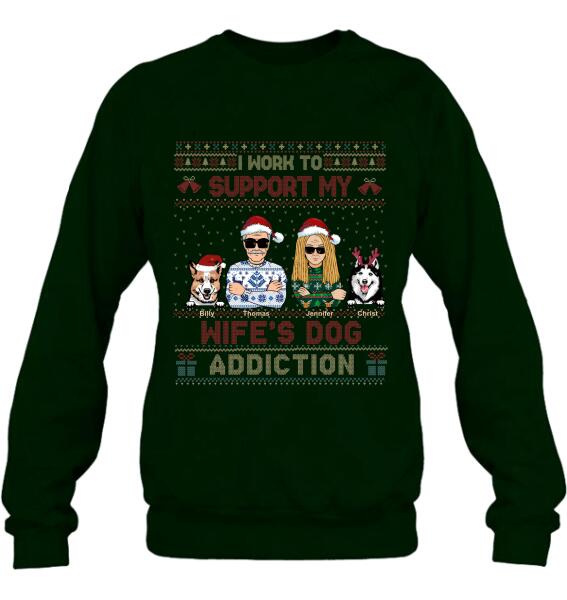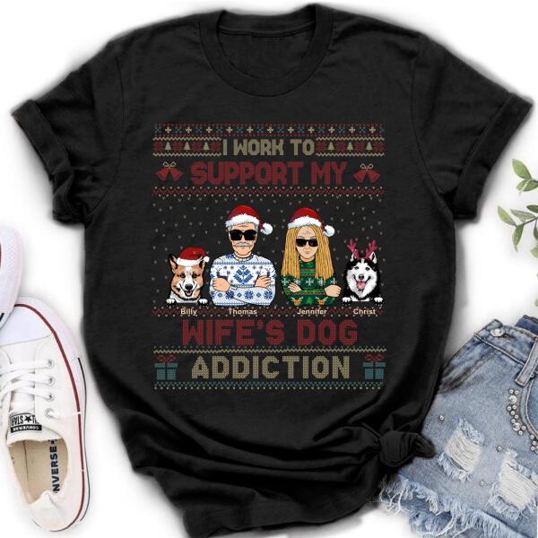 Custom Personalized Xmas Couple Dog Shirt – Upto 5 Dogs – Gift For Dog Lovers/Couple – I Work To Support My Wife’S Dog Addiction