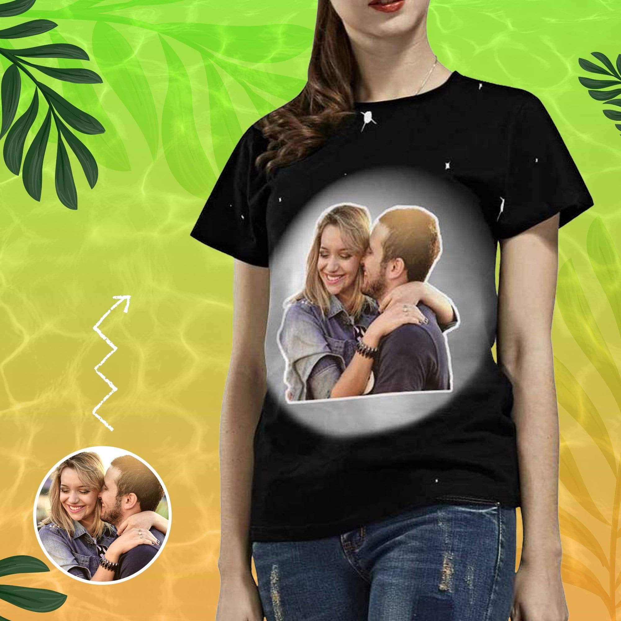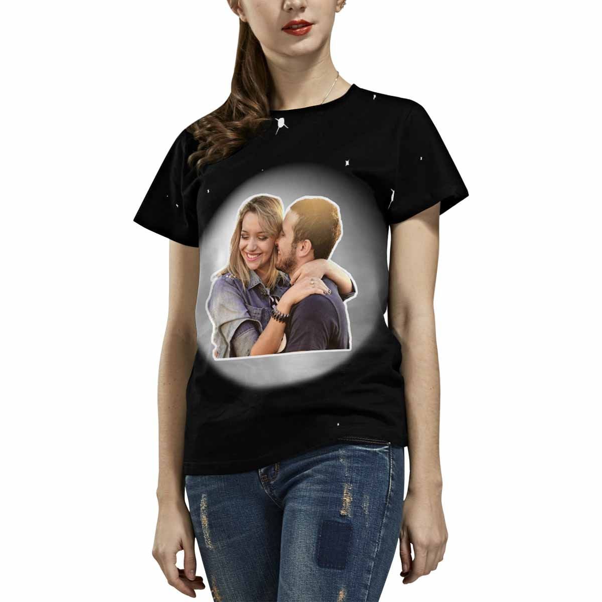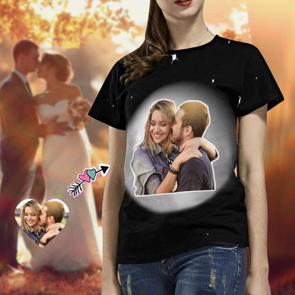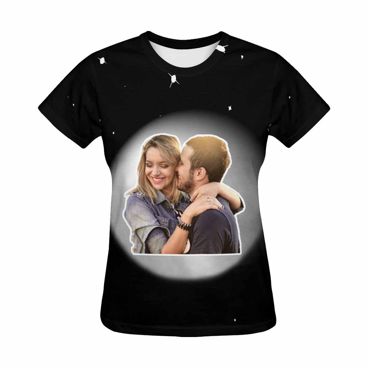 Custom Photo Love Couple Planet Women’S All Over Print T-Shirt