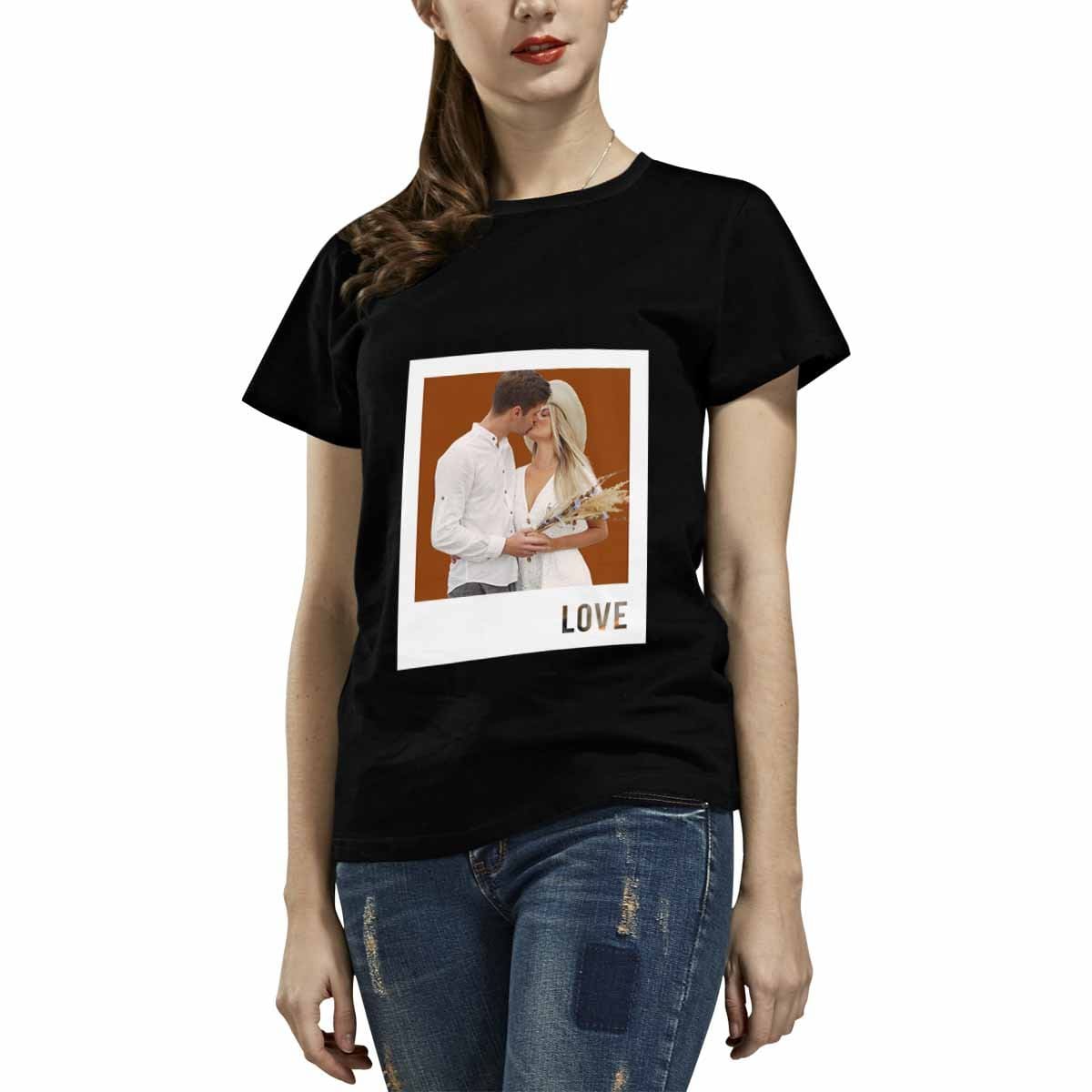 Custom Photo Loving Couple Brown Background Women’S All Over Print T-Shirt
