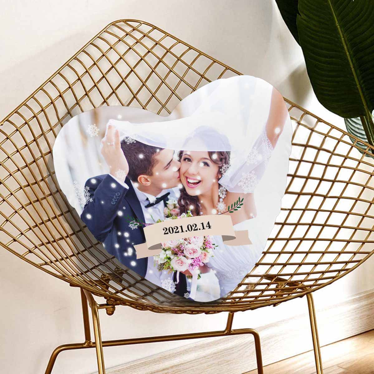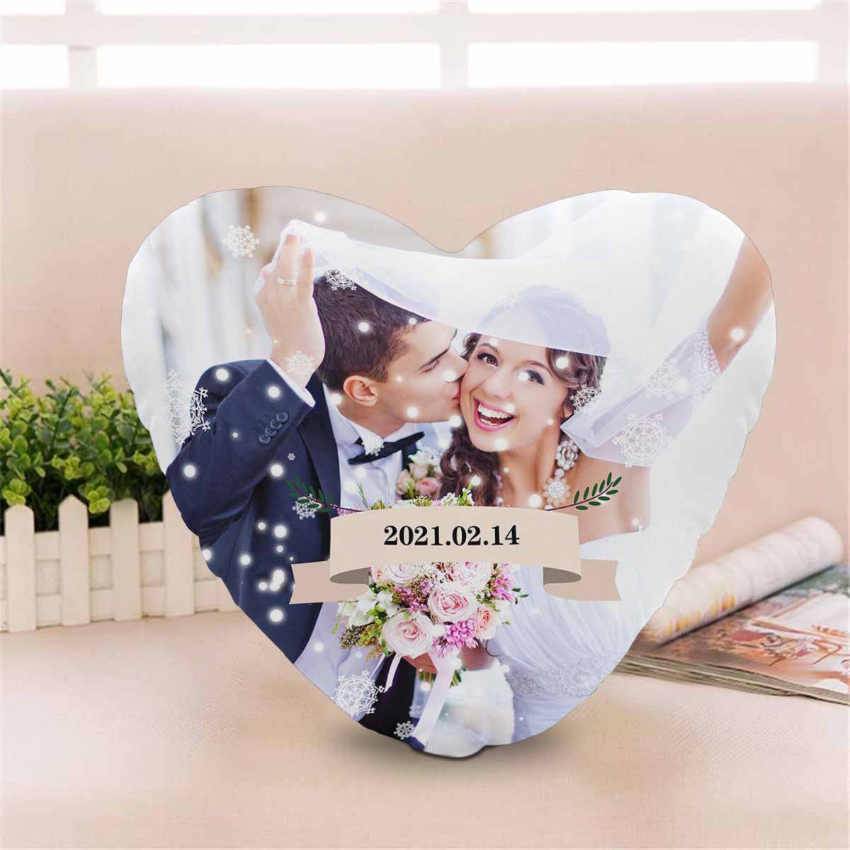 Custom Photo&Date Couple Heart-Shaped Pillow