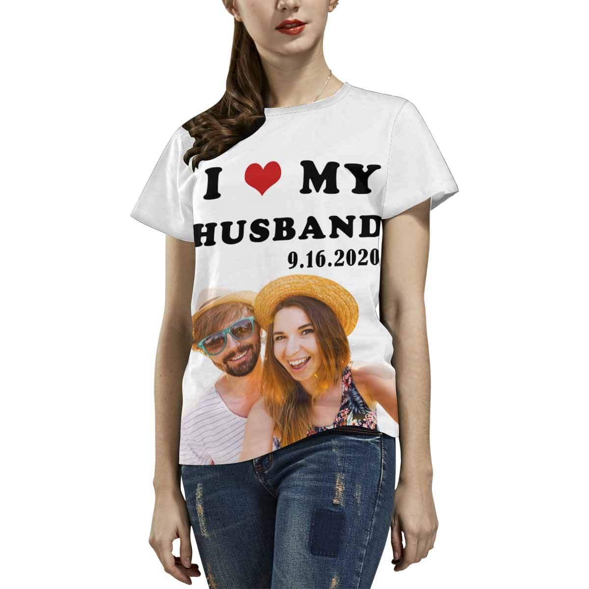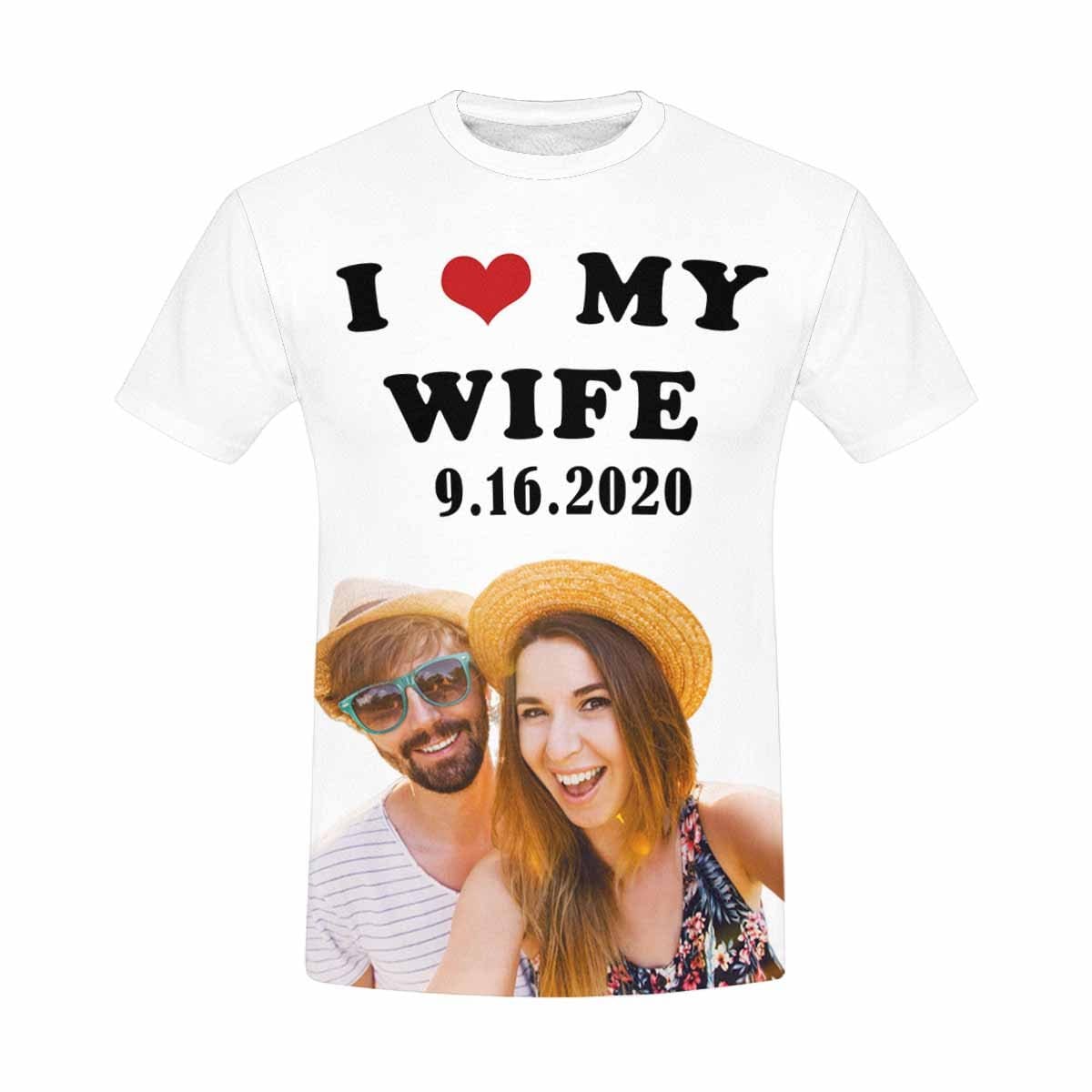 Custom Photo&Date I Love My Wife Matching Couple T Shirts