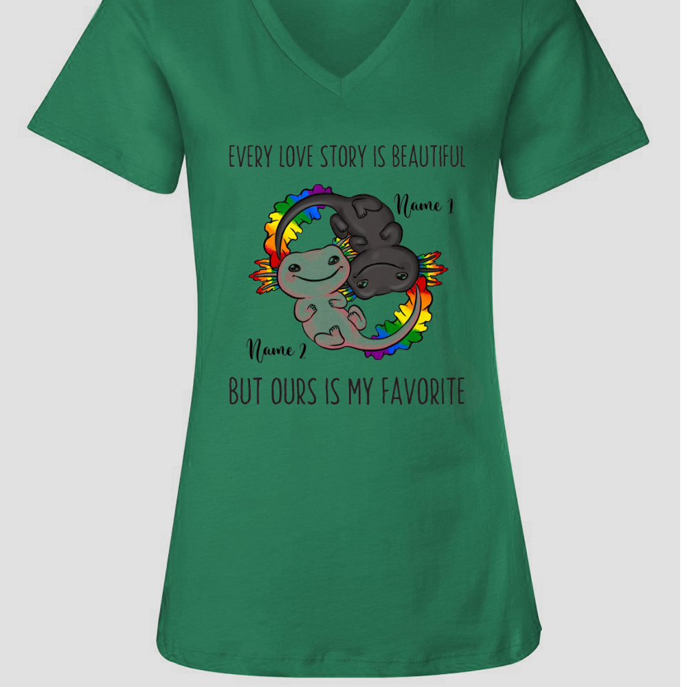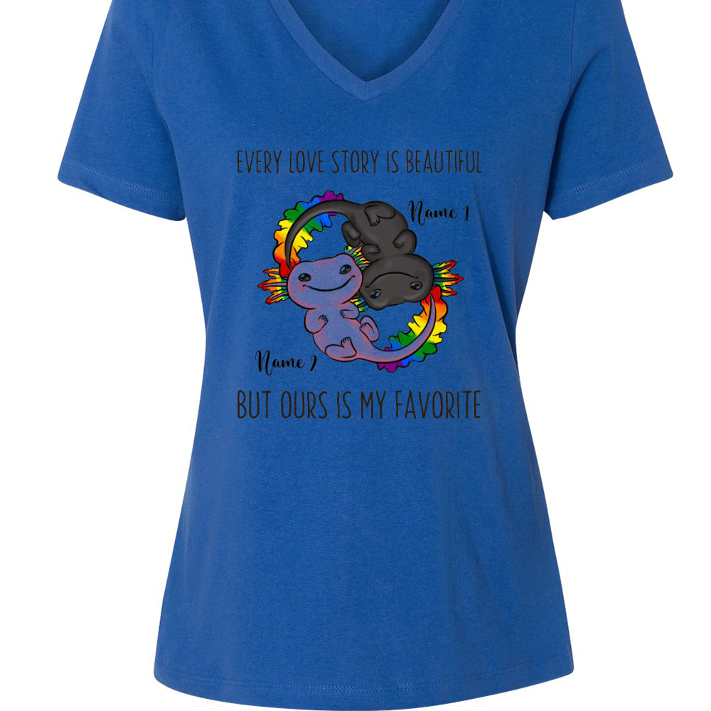 Customized Gift Lgbt Couple, Lesbian Couple, Every Love Story Is Beautiful V-Neck