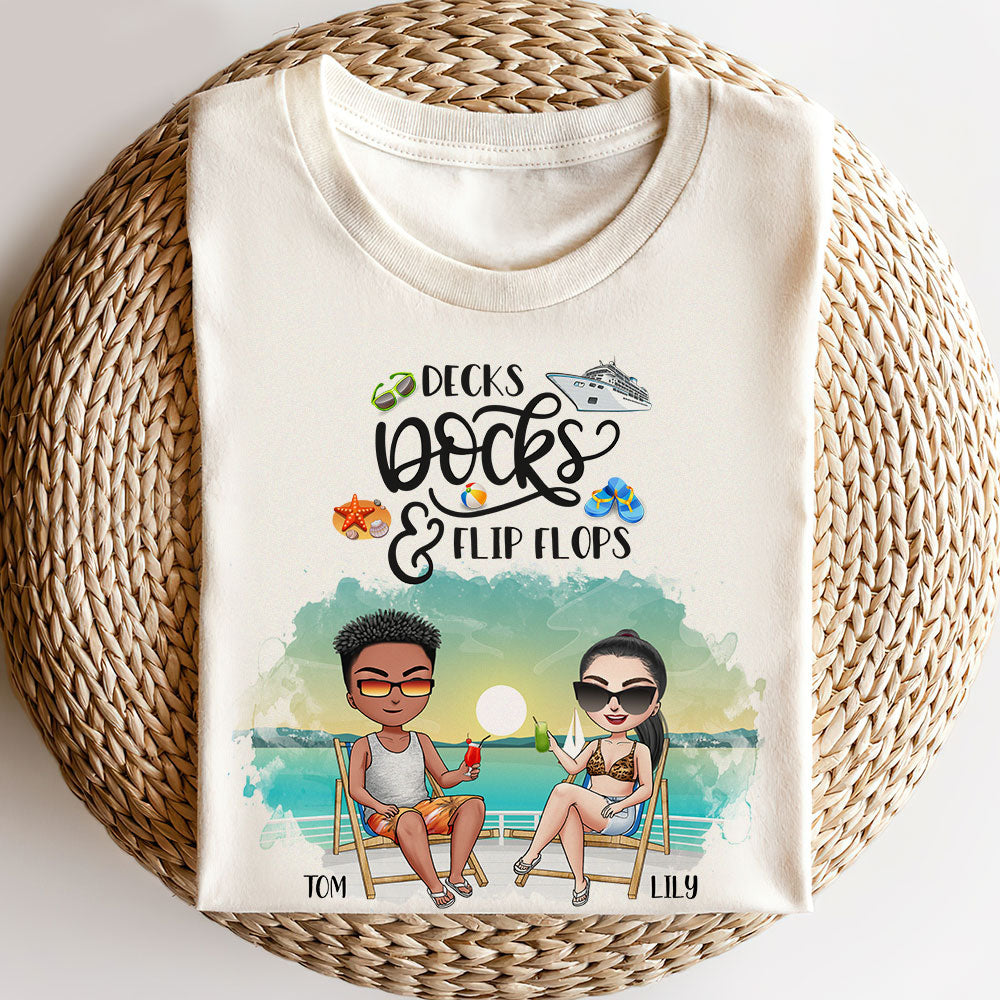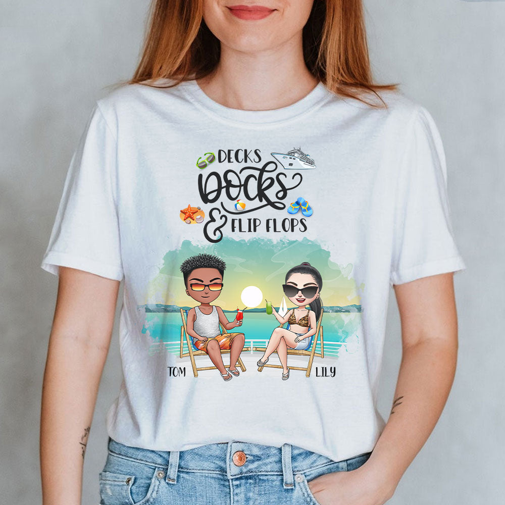 Decks Docks And Flip Flops Personalized Cruising Shirts Couple Drinking