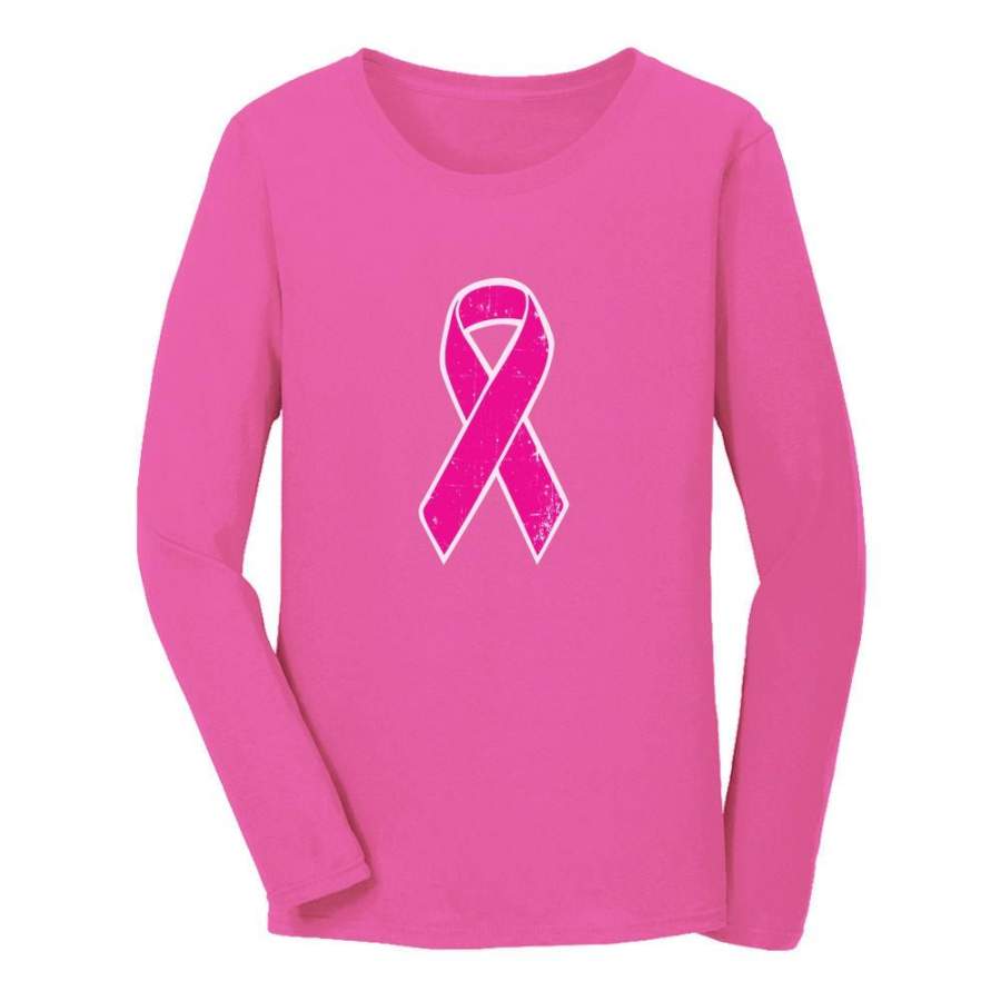 Distressed Pink Ribbon – Breast Cancer Awareness Women Long Sleeve T-Shirt