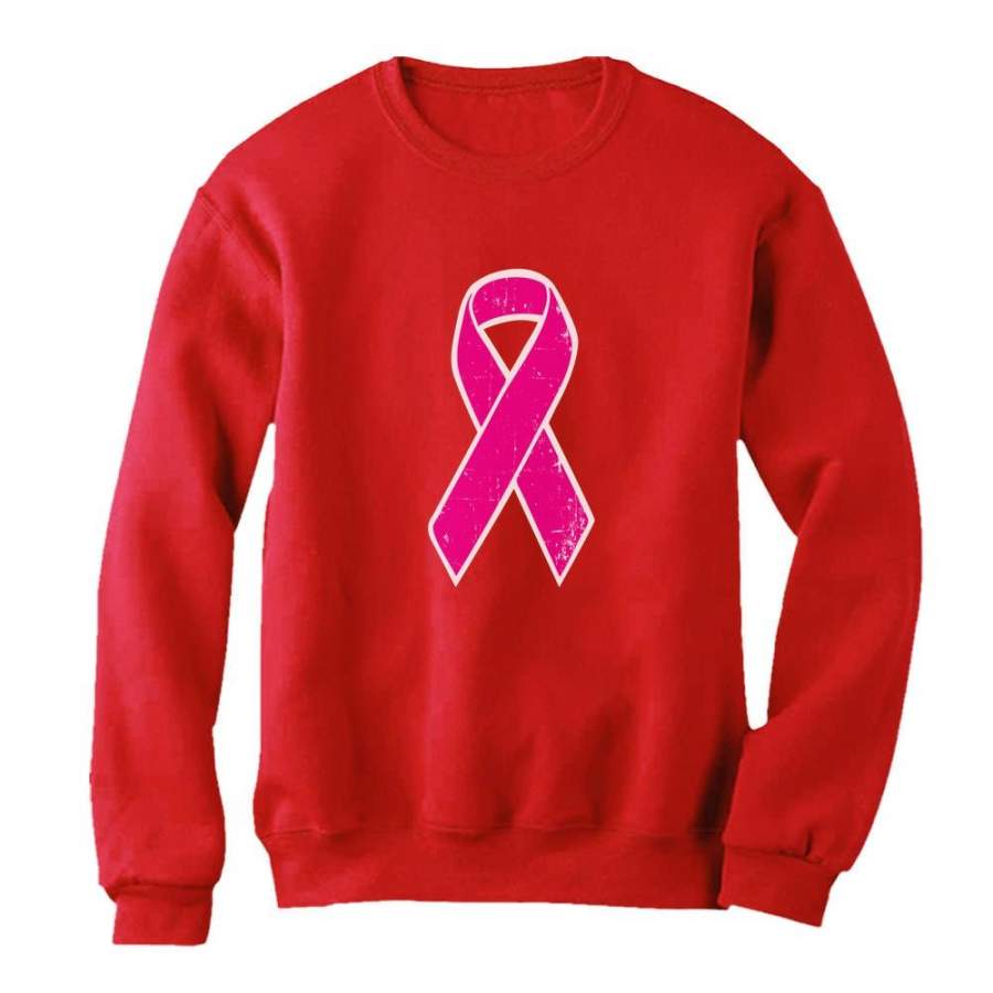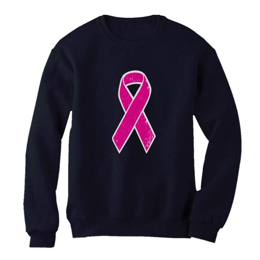 Distressed Pink Ribbon – Breast Cancer Awareness Women Sweatshirt