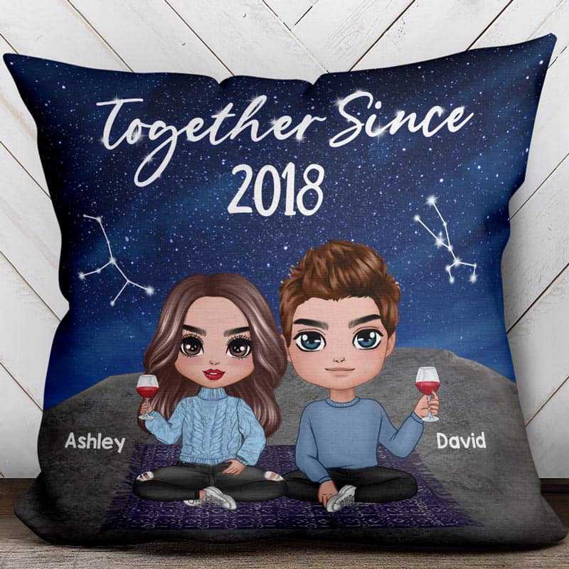 Doll Couple Sitting Under Starry Night Personalized Pillow (Insert Included)