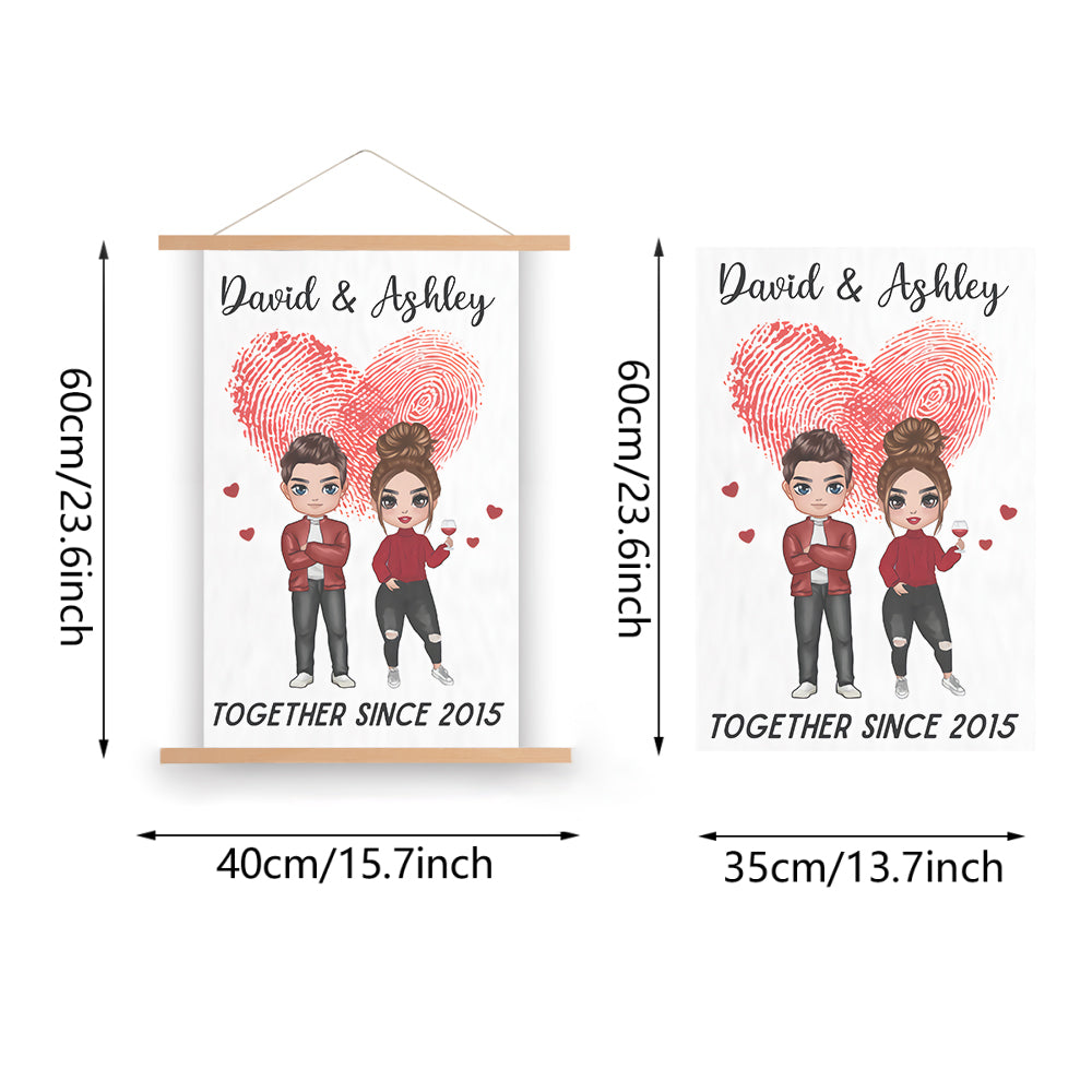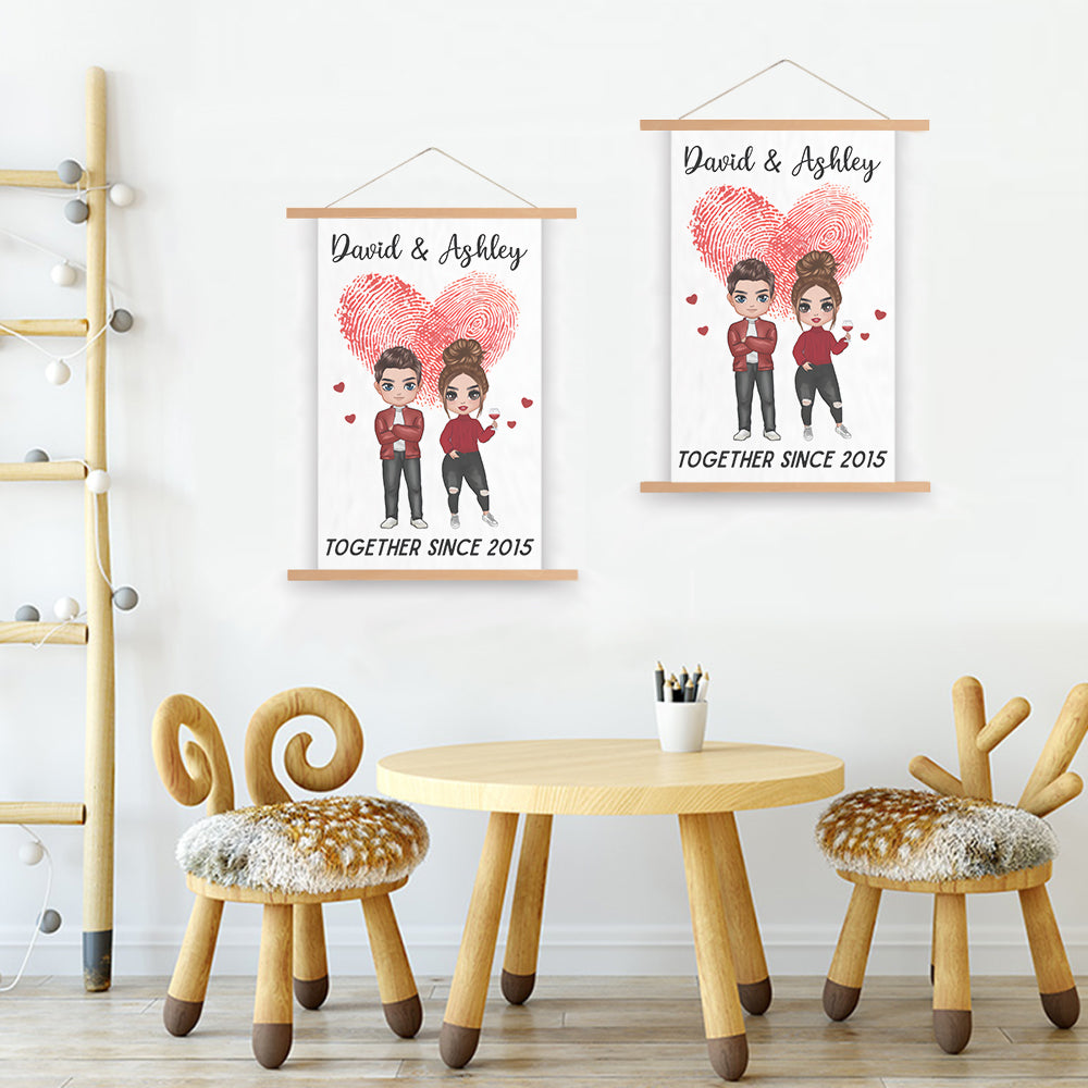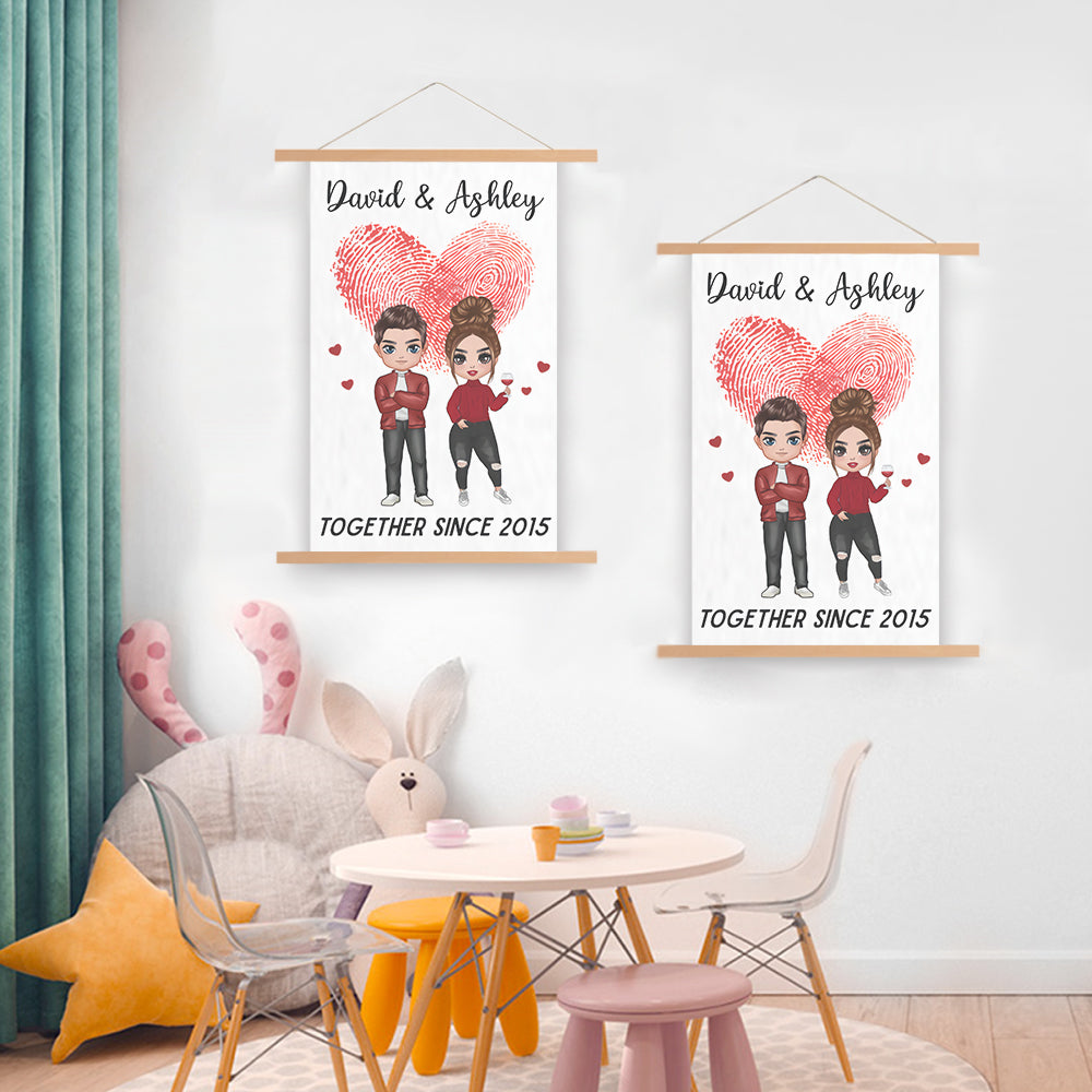 Doll Couple Together Since Anniversary Gift Personalized Wall Scroll Painting With Wooden Poster Hanger
