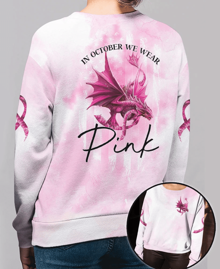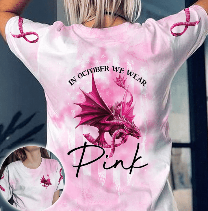 Dragon In October We Wear Pink Breast Cancer Awareness All Over Print Shirts
