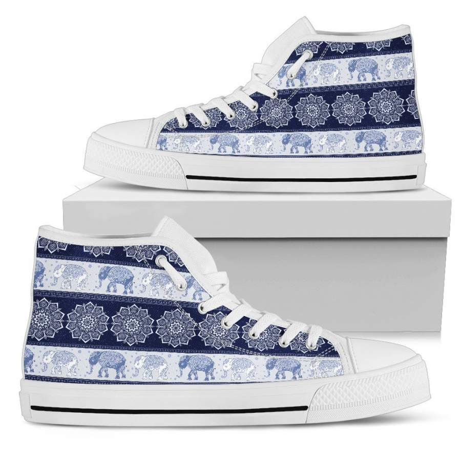 Elephant Mandala Flower Purple Women’s High Top Shoes Canvas Sneakers