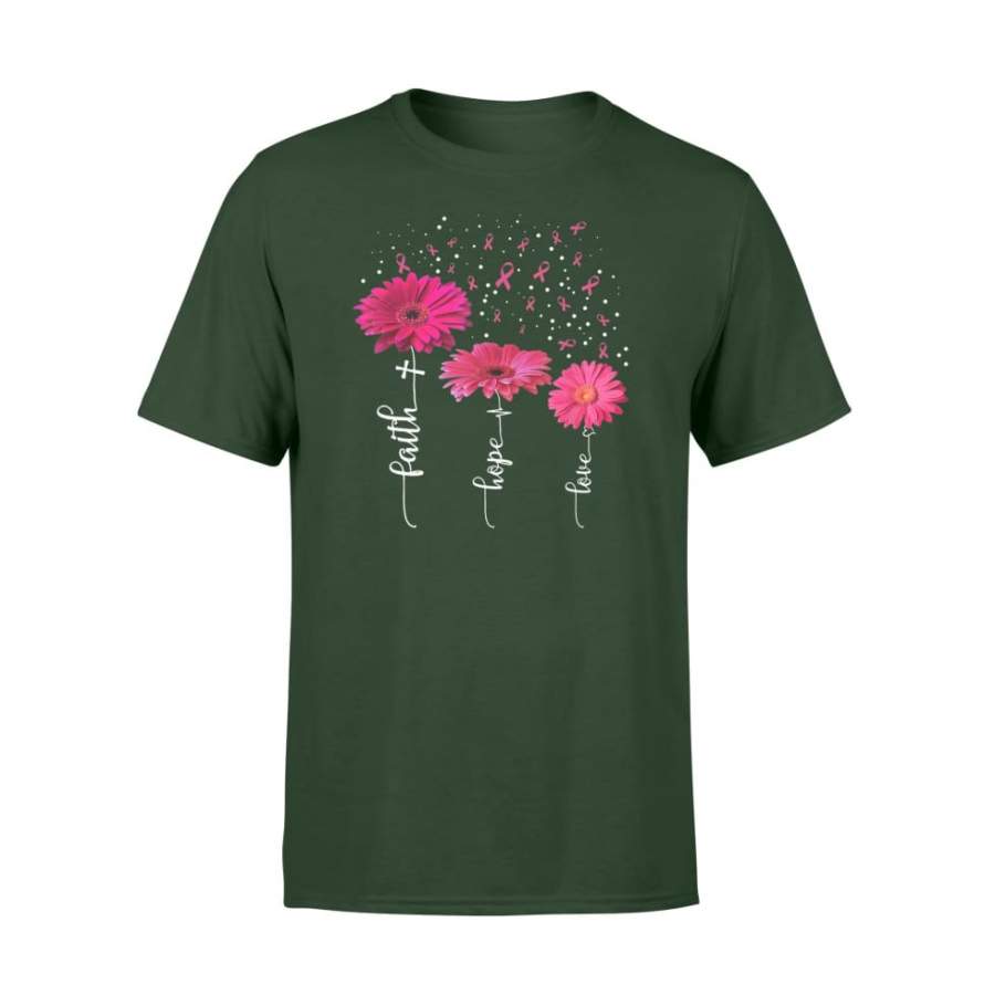 Faith Hope Love _ Pink Daisy Flower Breast Cancer Awareness Shirt For Men Women – Standard T-shirt
