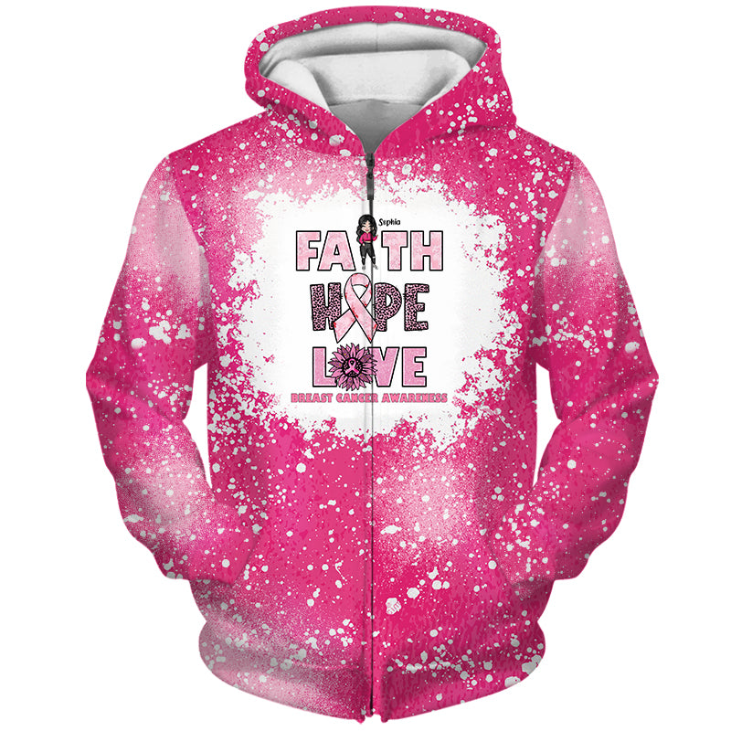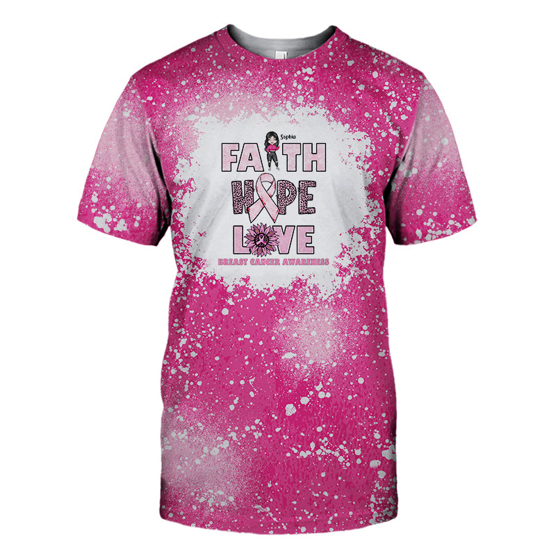 Faith Hope Love Breast Cancer Awareness 3D Personalized Name Shirt Ttalt0079
