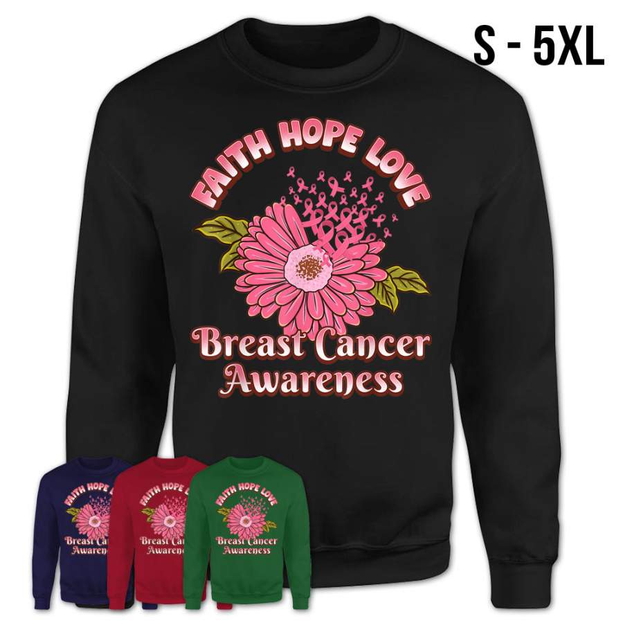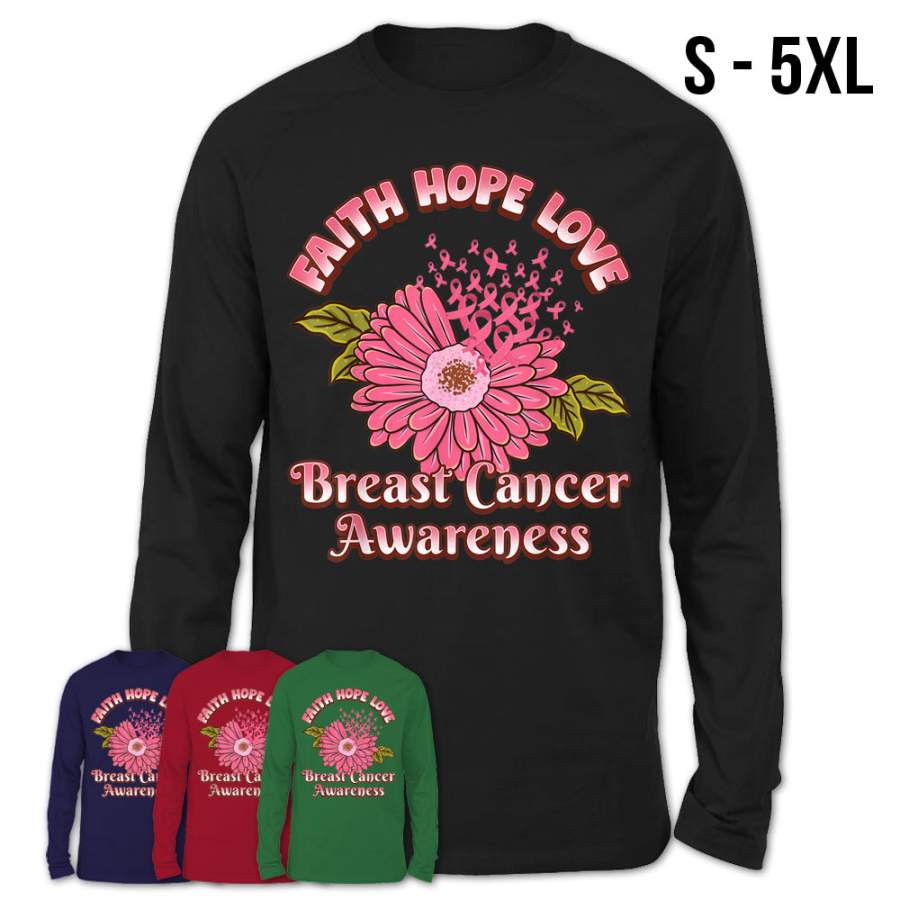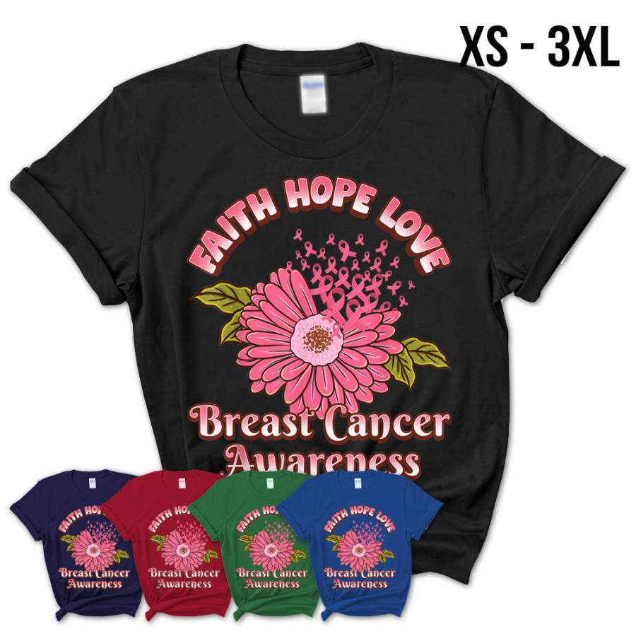 Faith Hope Love Breast Cancer Awareness Flower Pink Ribbon T-Shirt – Teezou Store