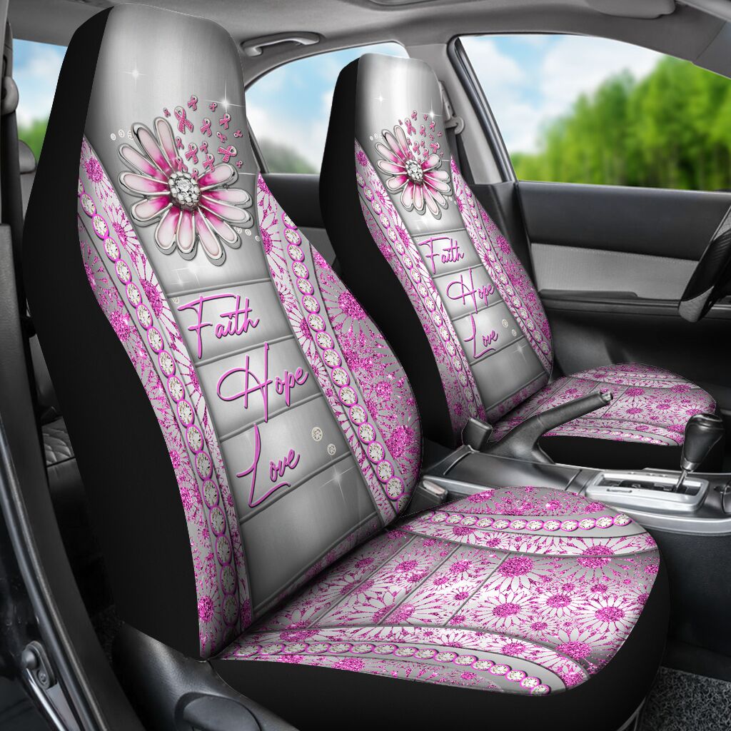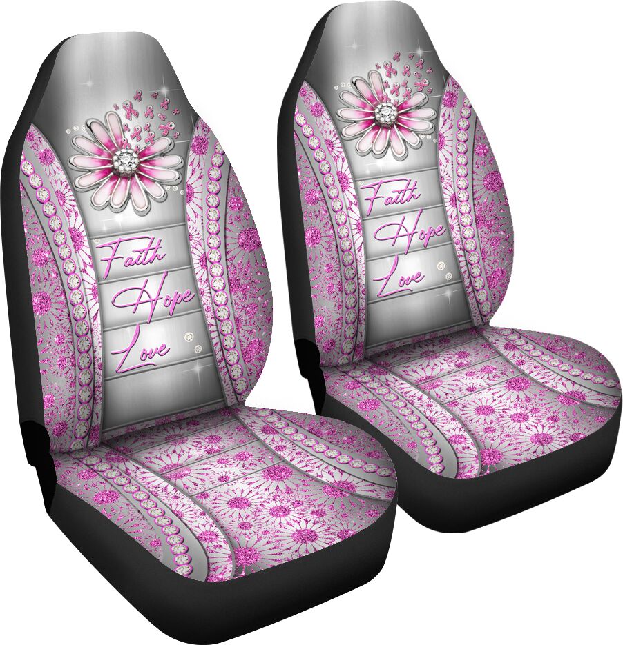 Faith Hope Love Faux Glitter Print Breast Cancer Awareness Seat Covers 0622