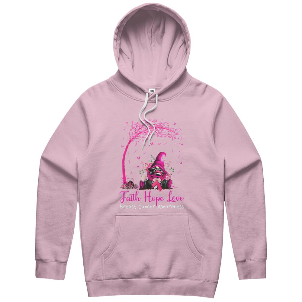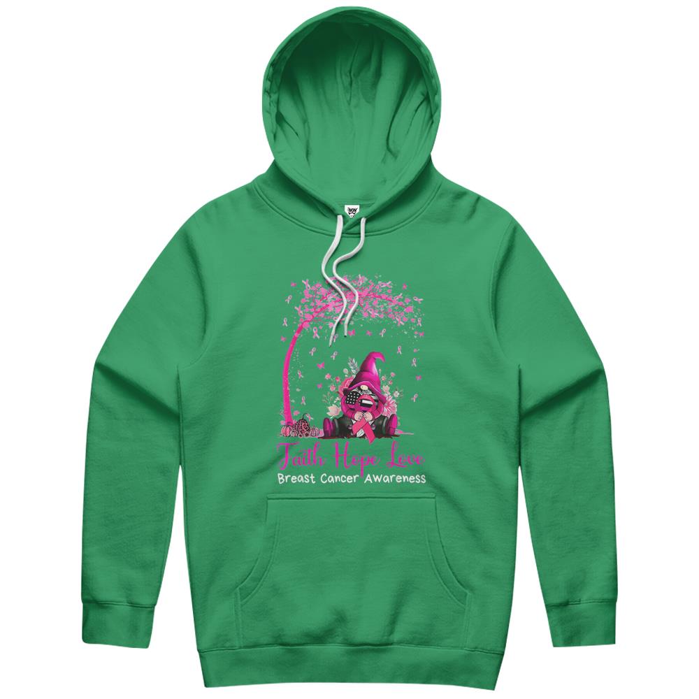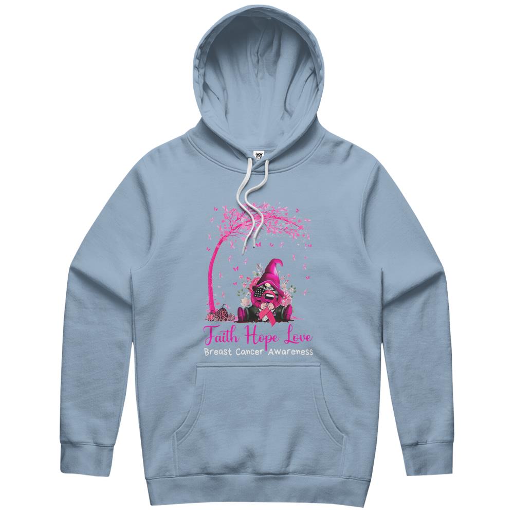 Faith Hope Love Gnome Breast Cancer Awareness Hoodie