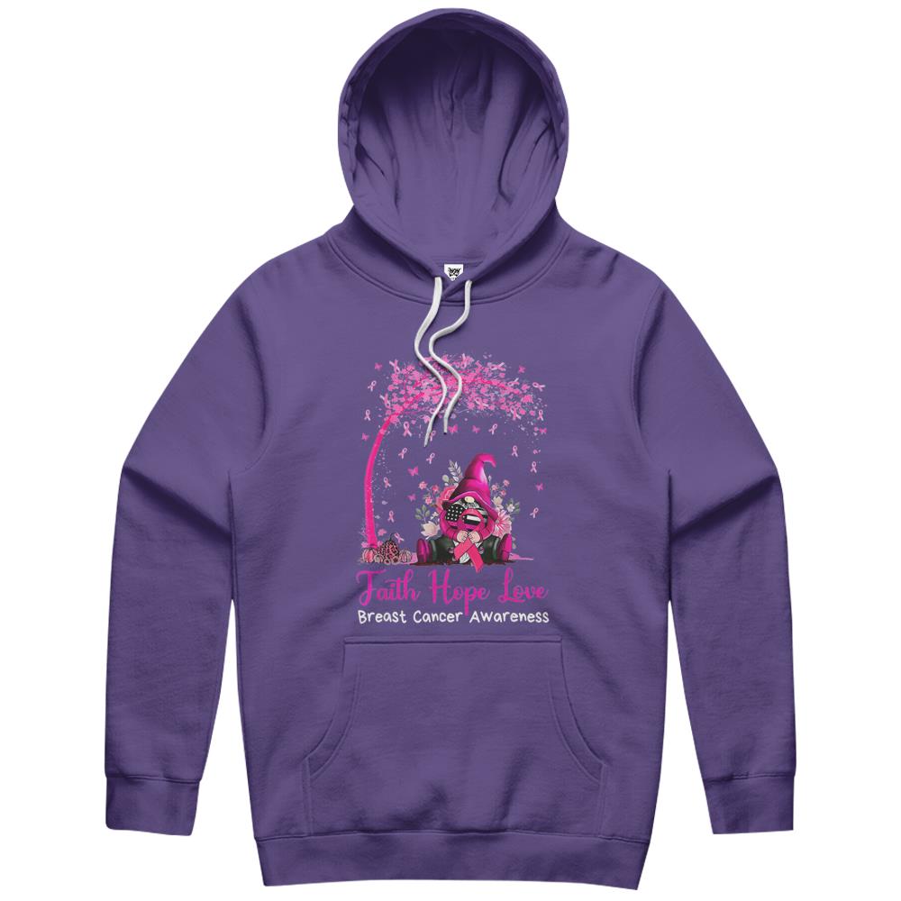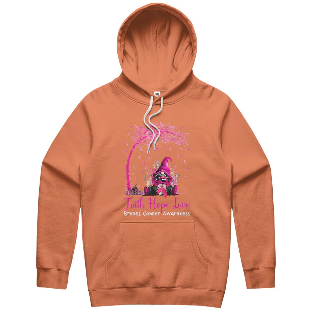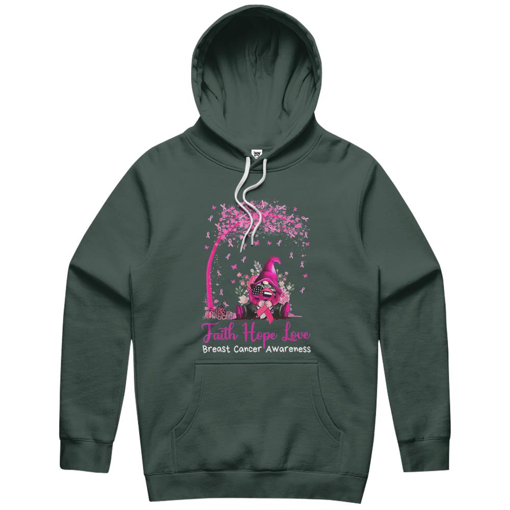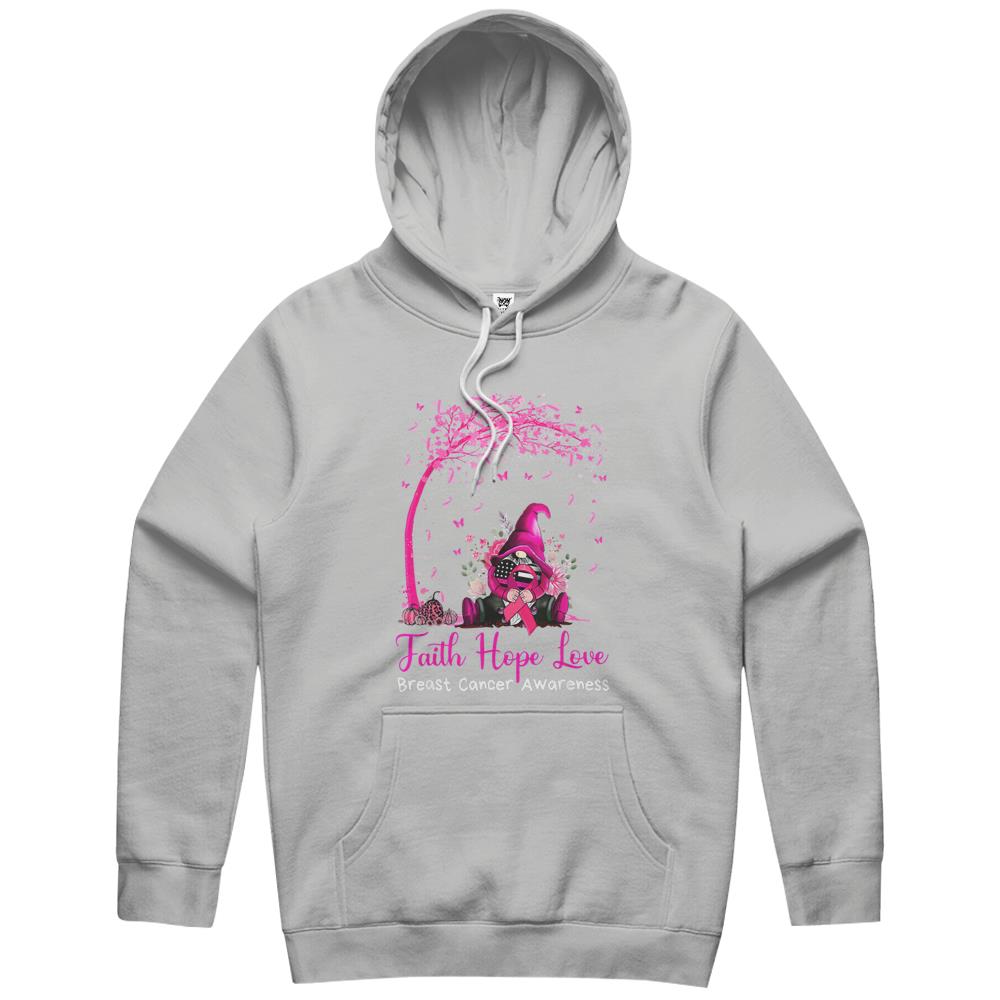 Faith Hope Love Gnome Breast Cancer Awareness Hoodie