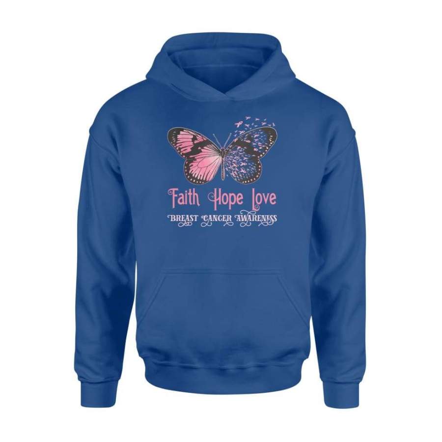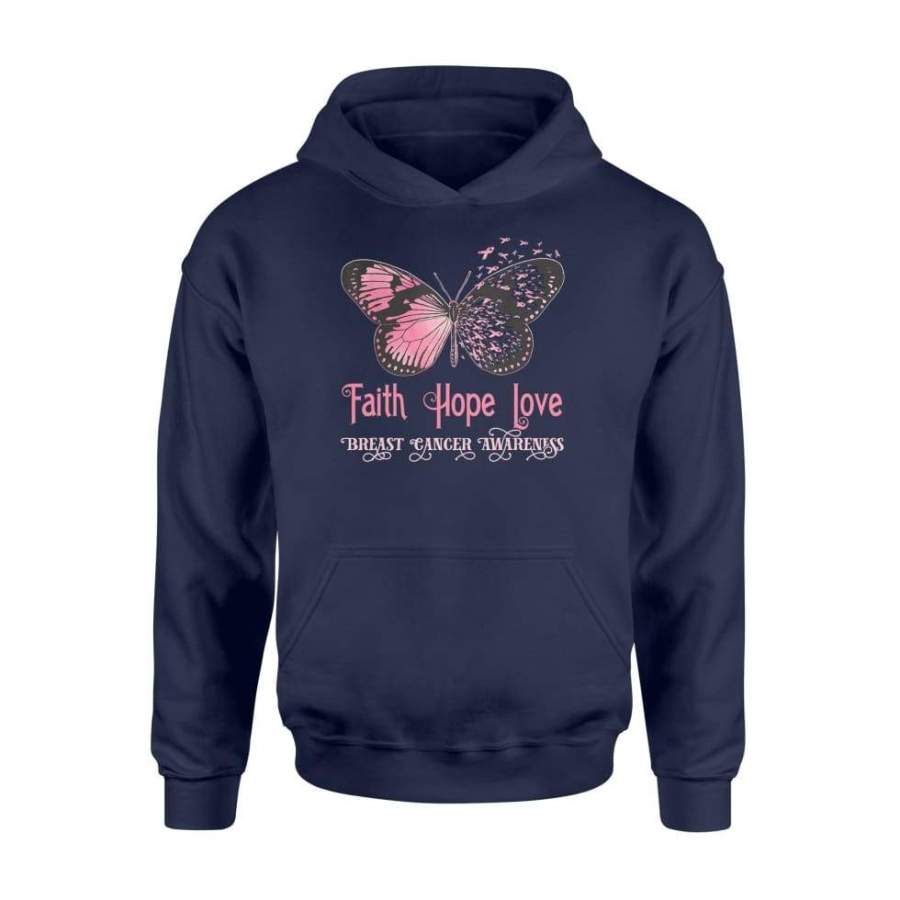Faith Hope Love Pink Butterfly Breast Cancer Awareness Shirt For Men Women – Standard Hoodie