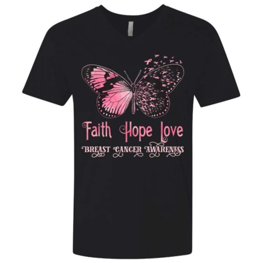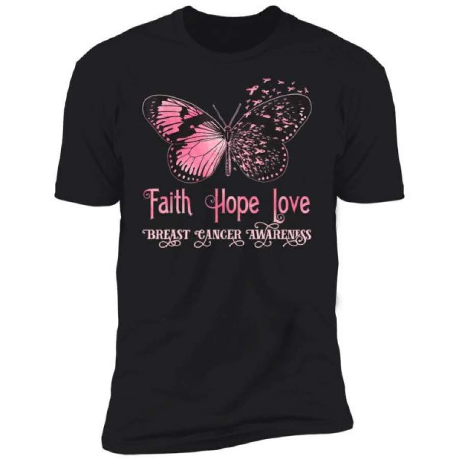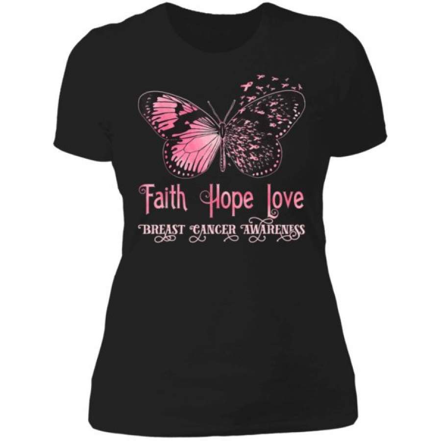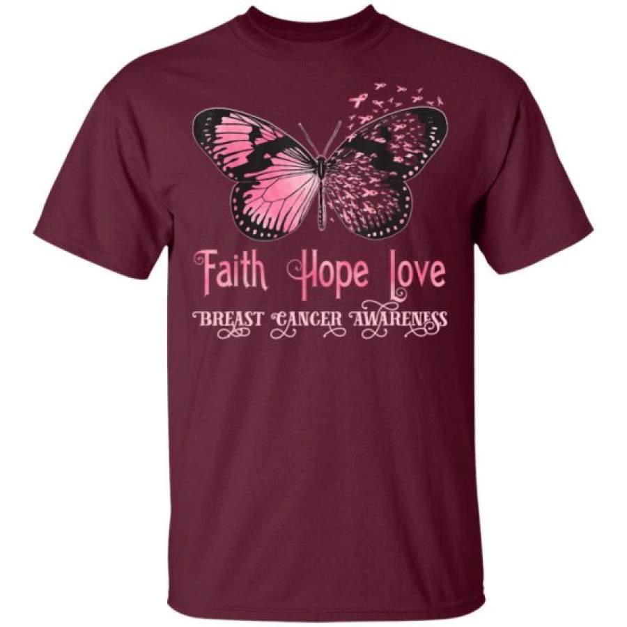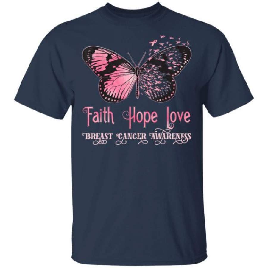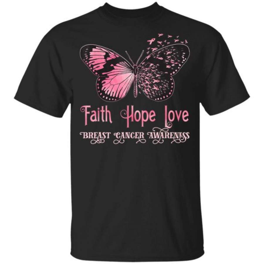 Faith Hope Love Pink Butterfly Breast Cancer Awareness Shirts